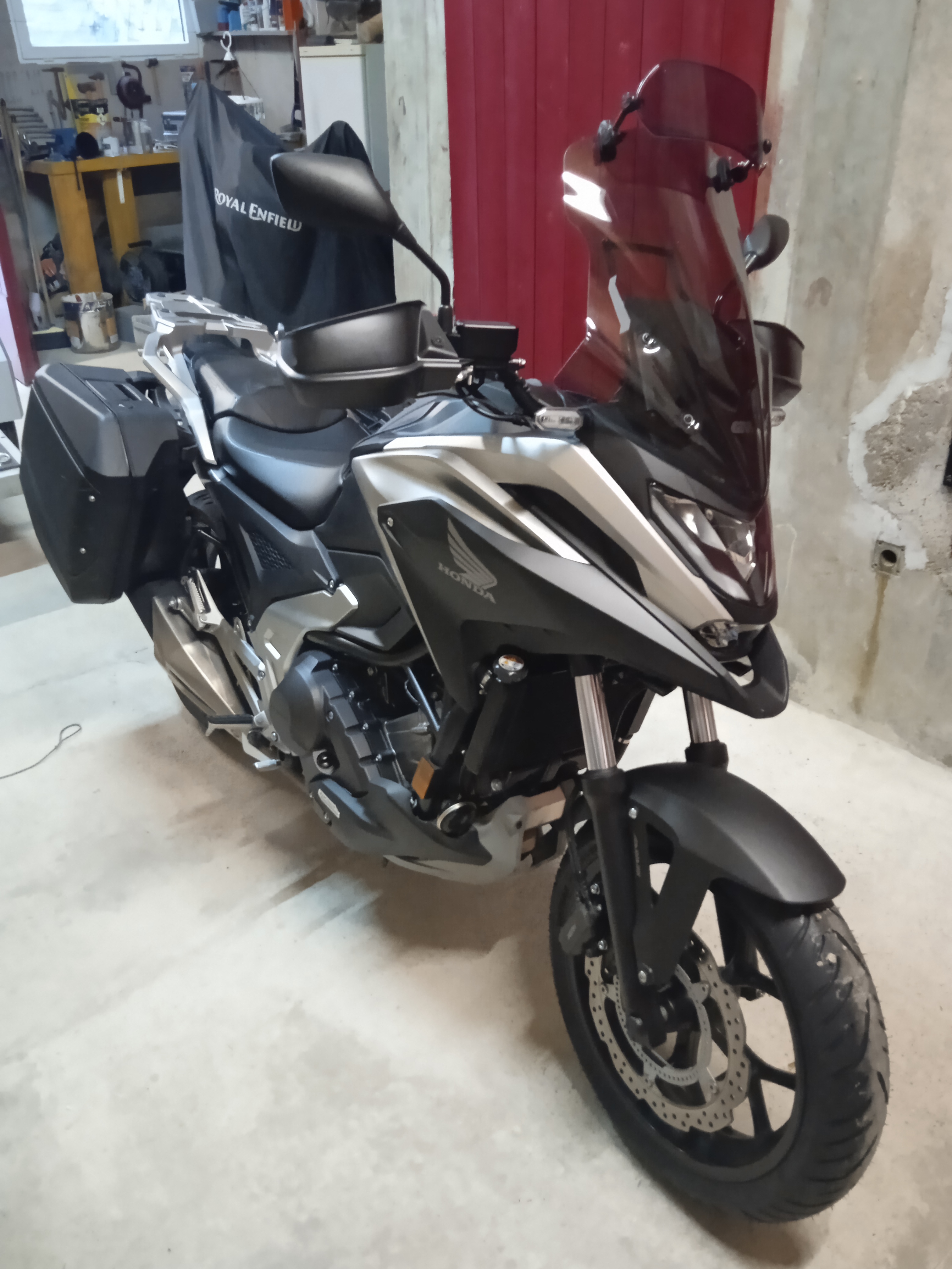 Bonjour à tous,donc je vous presente ma ncx 2021,achetée d occasion à Rodez.Elle avait 11000km et surtout bien équipée,bulle haute ,kit valises+top case,poignets chauffante,prise dans le coffre,protege mains,support gps.Pour ma part j ai rajouté un protege radiateur,un passage de roue les décos alu ...