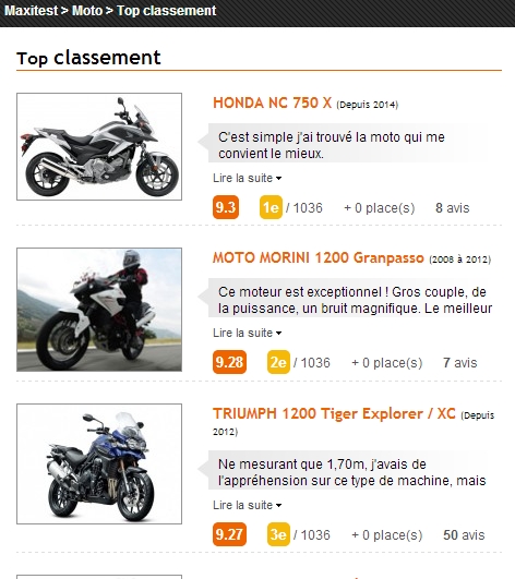 Vous taper "classement moto station"sur le net et qui est number one sur plus de 1000 bécanes???