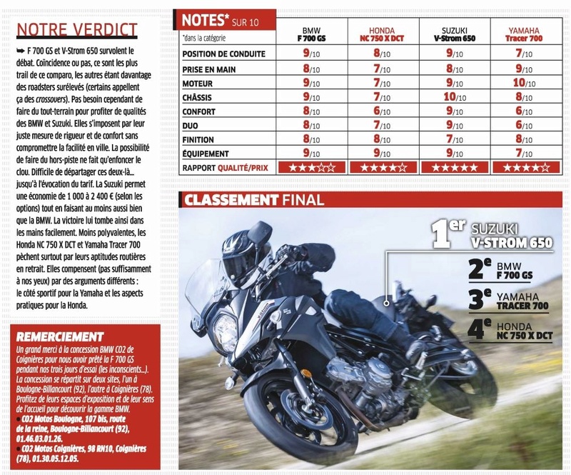 Vais lire ça avec attention car je suis passé de la NX 700 vers la v-Strom 650 cet été