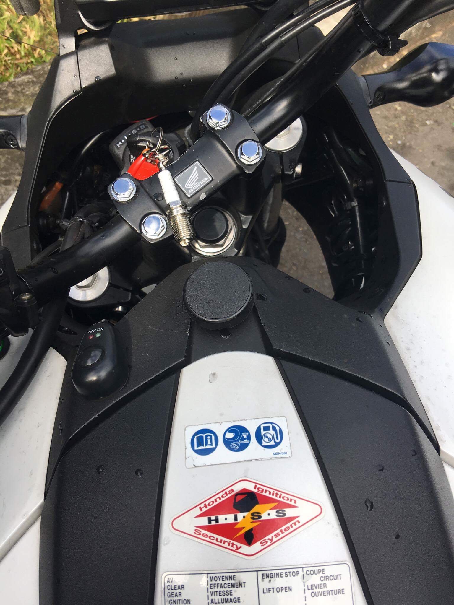 Je peux ainsi oublier la clef sur la serrure sans crainte. Ça fait penser à un bouchon de réservoir d'huile moteur. La bougie est un por5e clef et le bouton on/off sert à allumer les feux additionnel