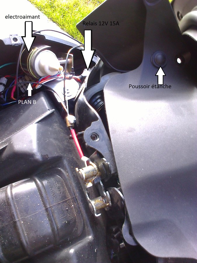 Bonjour la gaine d'origine ne laisse que 1 cm de câble visible côté clef il n'y a pas assez de place pour rajouter le tirage de l'électroaimant. Sur la photo Le serrage des deux câbles est positionné après le support de de la gaine d'origine .