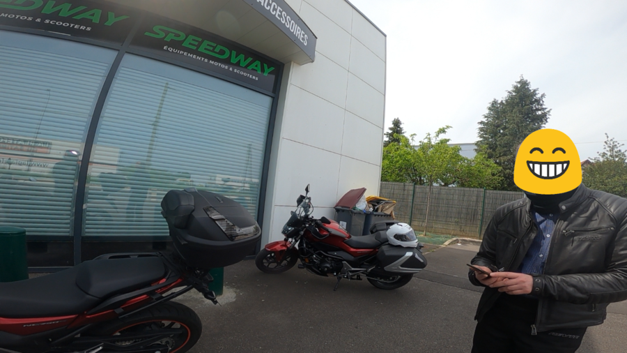 C'est à ce moment là dans cette période confinement où de peu de monde dans les magasins, que la chance fait qu'une NC750S qui plus est rouge apparait sur le parking du magasin.