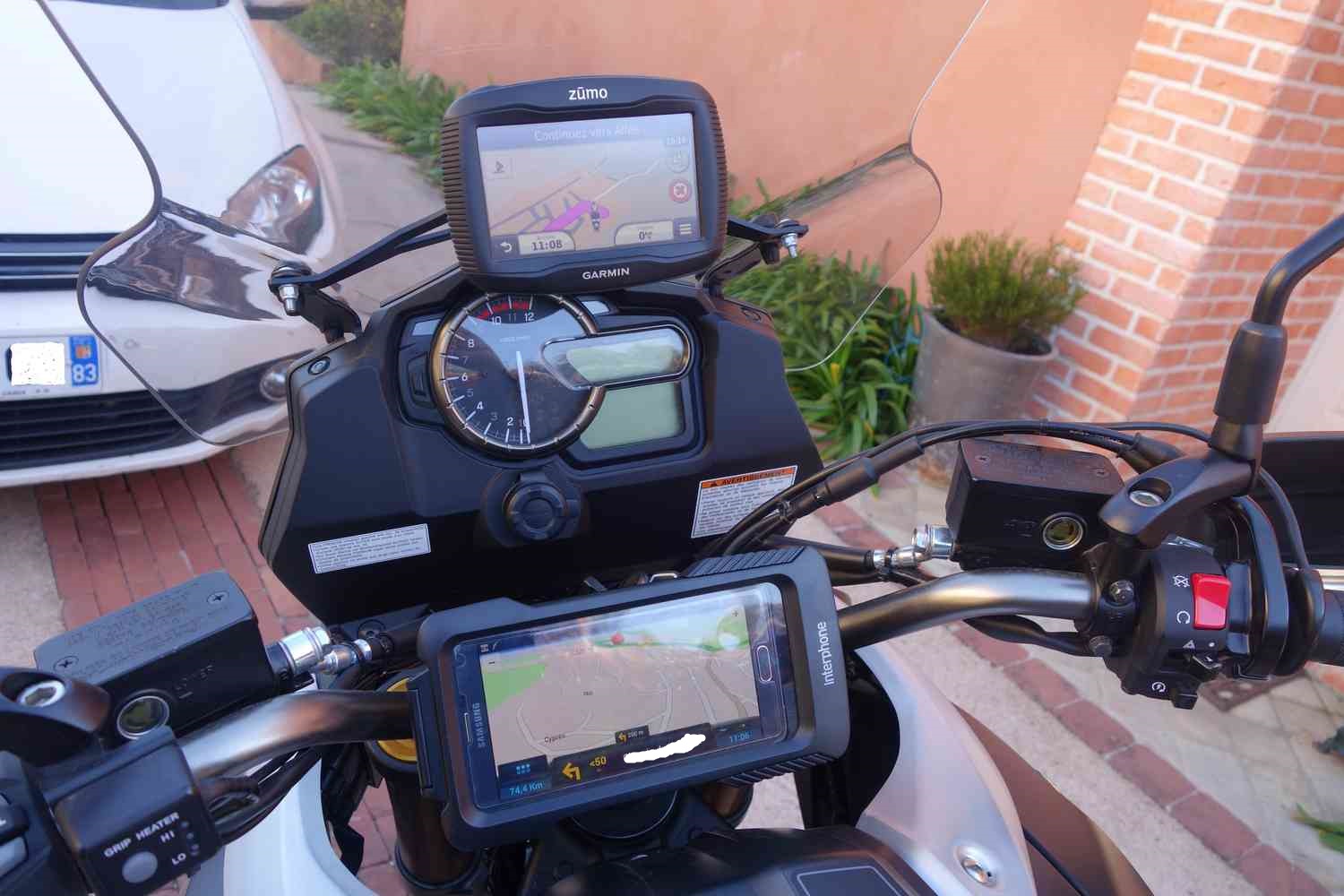 J'ai mis une photo avec les 2 outils (GPS Garmin Zumo 390LM et Samsung Note 4 dans boîtier étanche Cellular Line/interphone/pro case) un jour où je faisais une comparaison