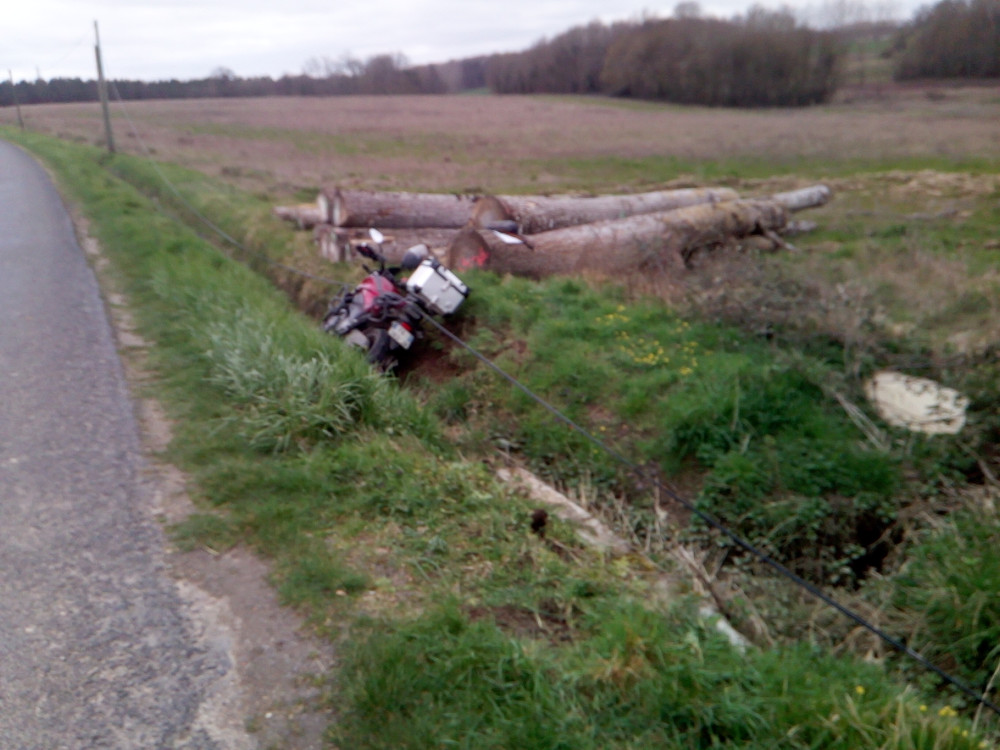 Conséquence, la moto a morflé, même si sur les photos, elle semble ne pas avoir trop souffert. Dépannage par l'assistance de mon assurance.