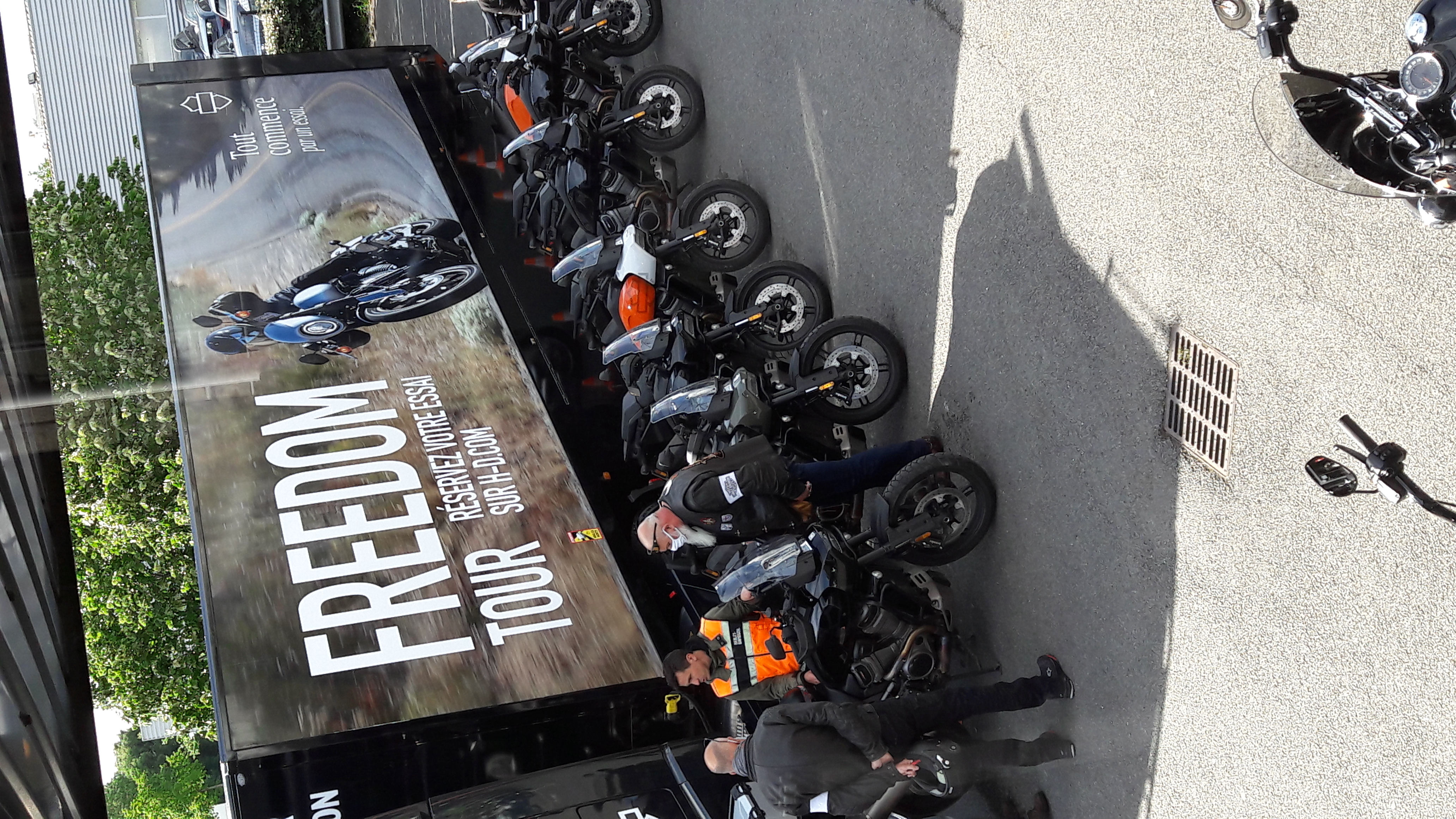 Le moteur V-Twin de 1252cc ne cogne pas autour des 2.000 tours. Nous disposions des versions "S" le haut de gamme avec une fourche de direction de série. Première fois que je vois un tel élément sur un trail. Elle dispose de l'option ARH (à 600€), Ce mode adapte la hauteur. Il descend à l'arrêt et il remonte la moto de 3cm au démarrage. Honnêtement, je n'ai rien sentie. Malheureusement, nous étions en mode "rain" (averses toutes la journée) et en dynamique je n'ai pas trouvé comment changer de mode pour tester les deux autres (road et sport). Il faut dire que l'essai était en mode soutenu. Fallait suivre le pilote chevronné (ancien pilote pro qui a gagné deux ou trois fois la course du Le Mans nous avait annoncé la personne de chez HD lors du debriefing avant l'essai). Pas eu le temps de profiter du paysage champêtre :D Vers la fin de l'essai il y a eu une nouvelle averse, la bulle m'envoyais la pluie directement dans la visière. J'ai eu beau essayé de la remonter en roulant. La manipulation semble difficile. J'ai pas réussi à vérifier si elle était plus protectrice.