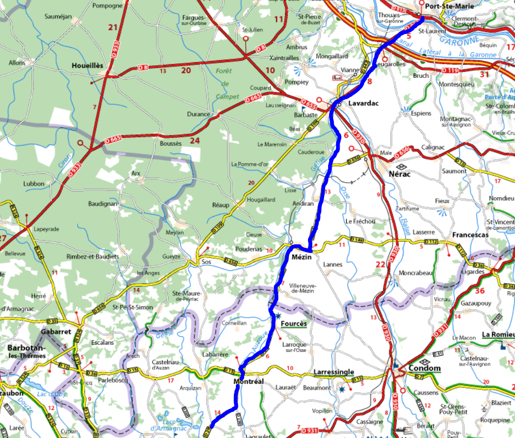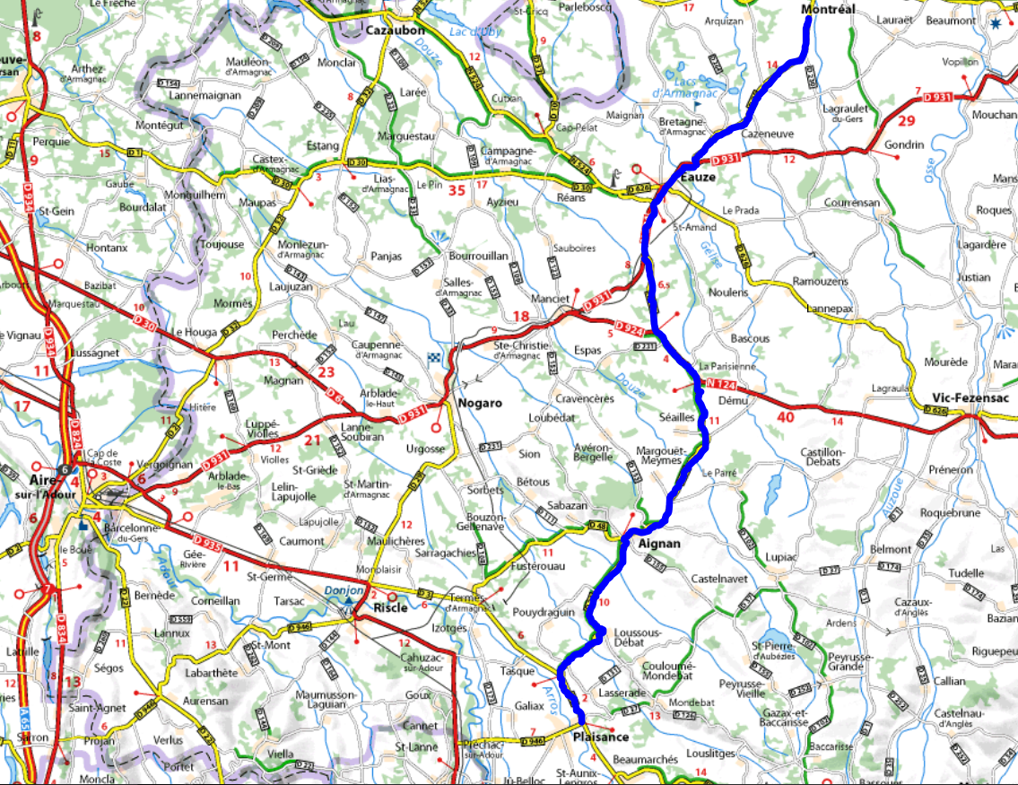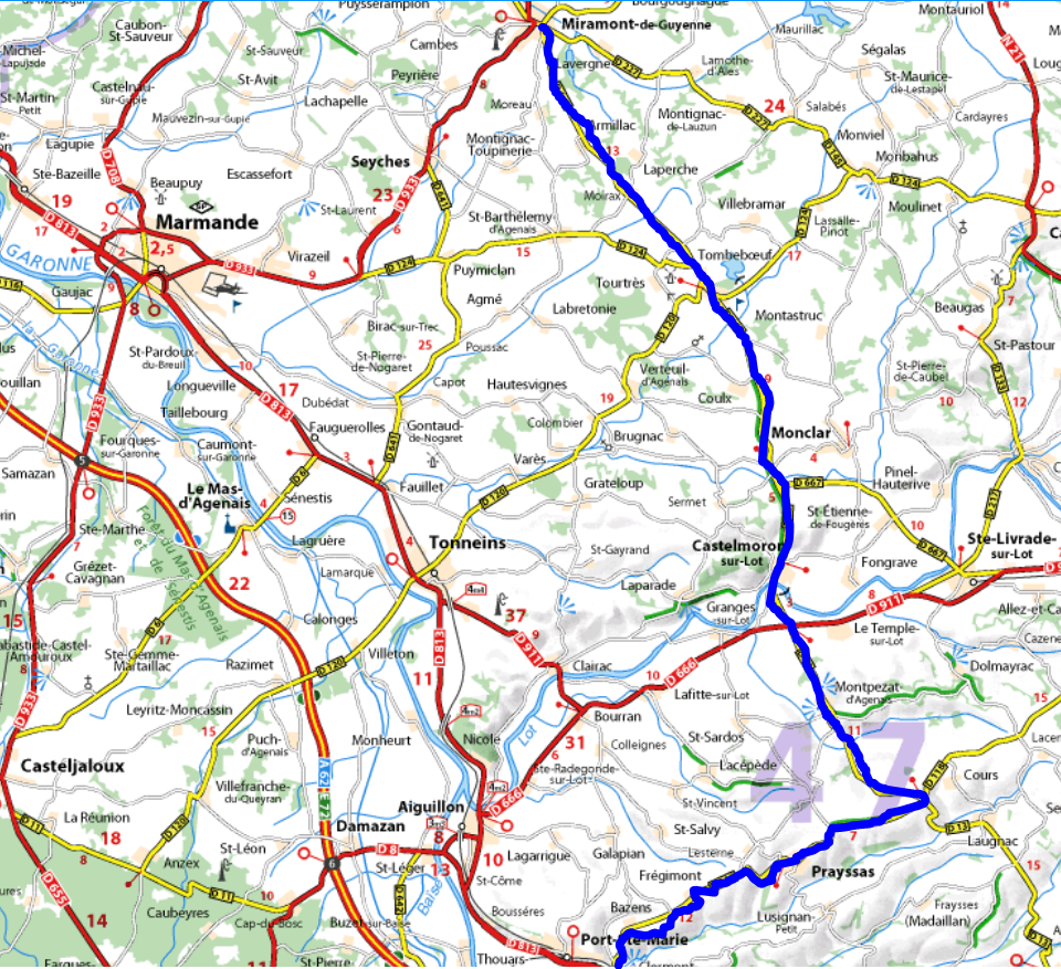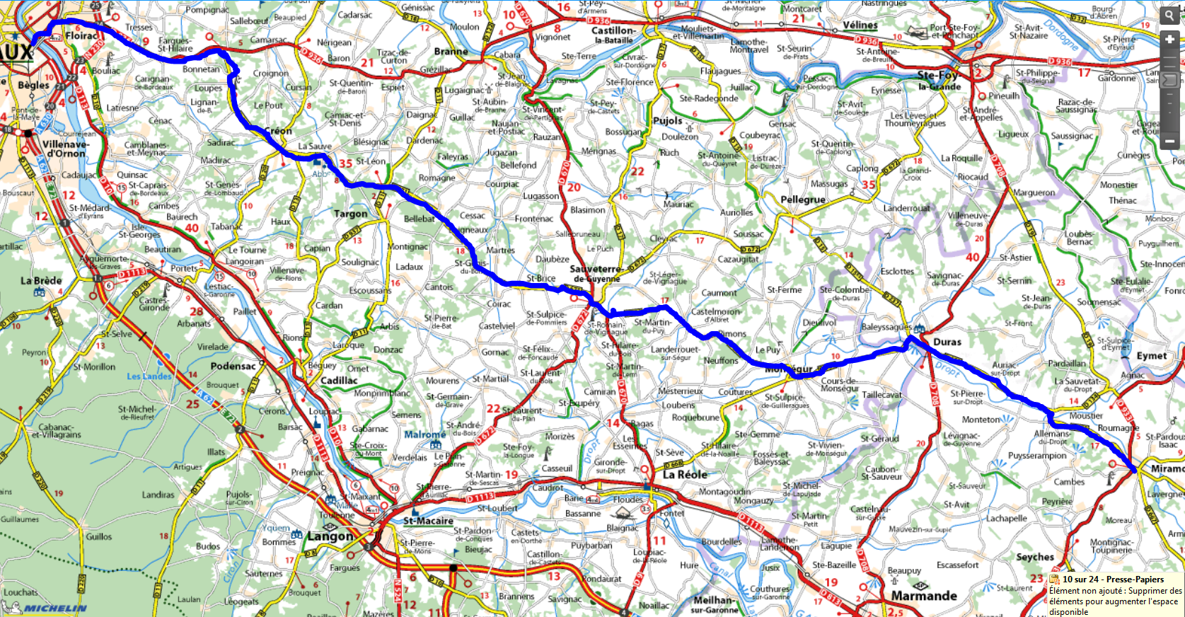 Voilà un exemple pour descendre de Bordeaux jusqu'à chez moi.