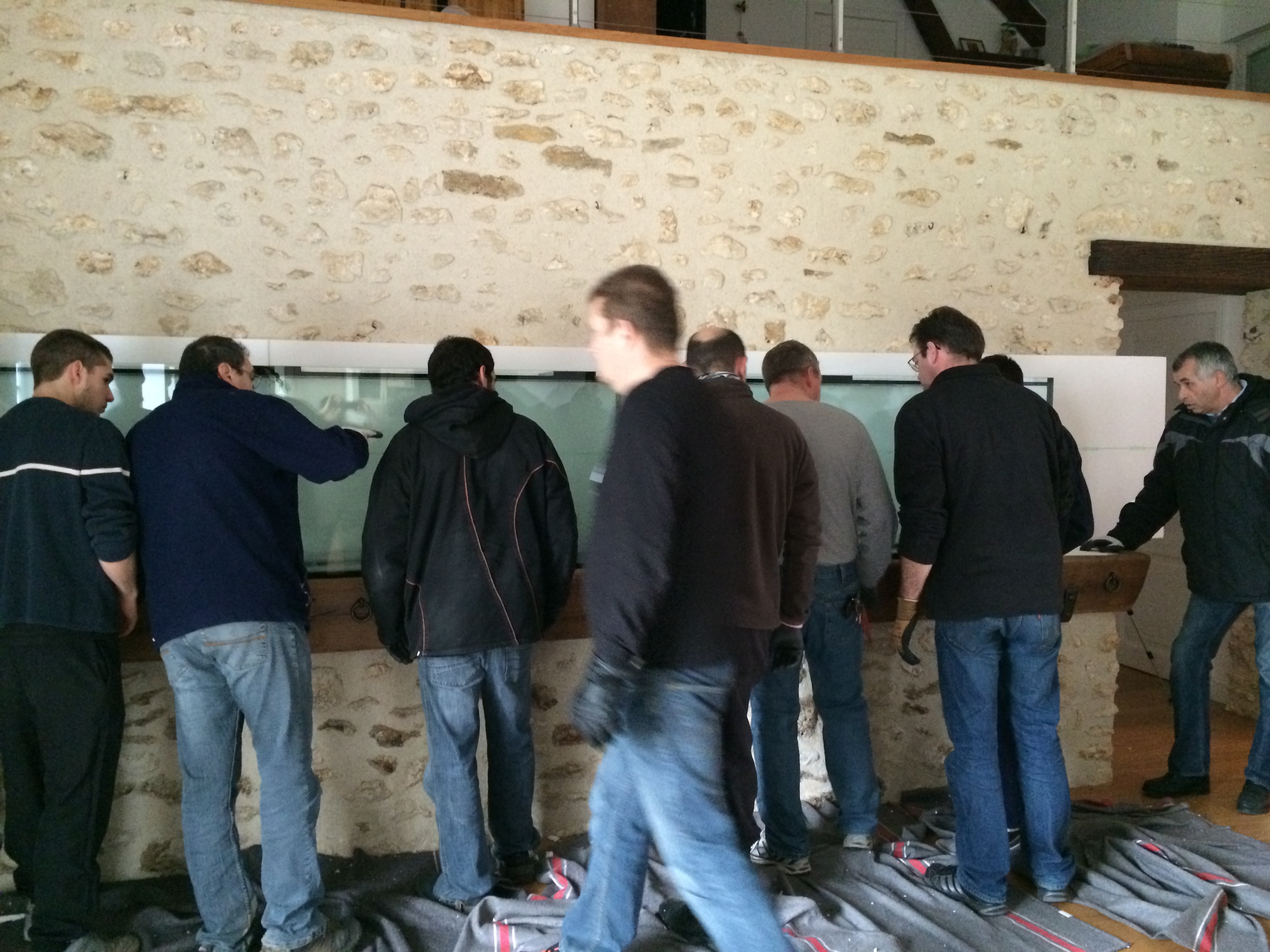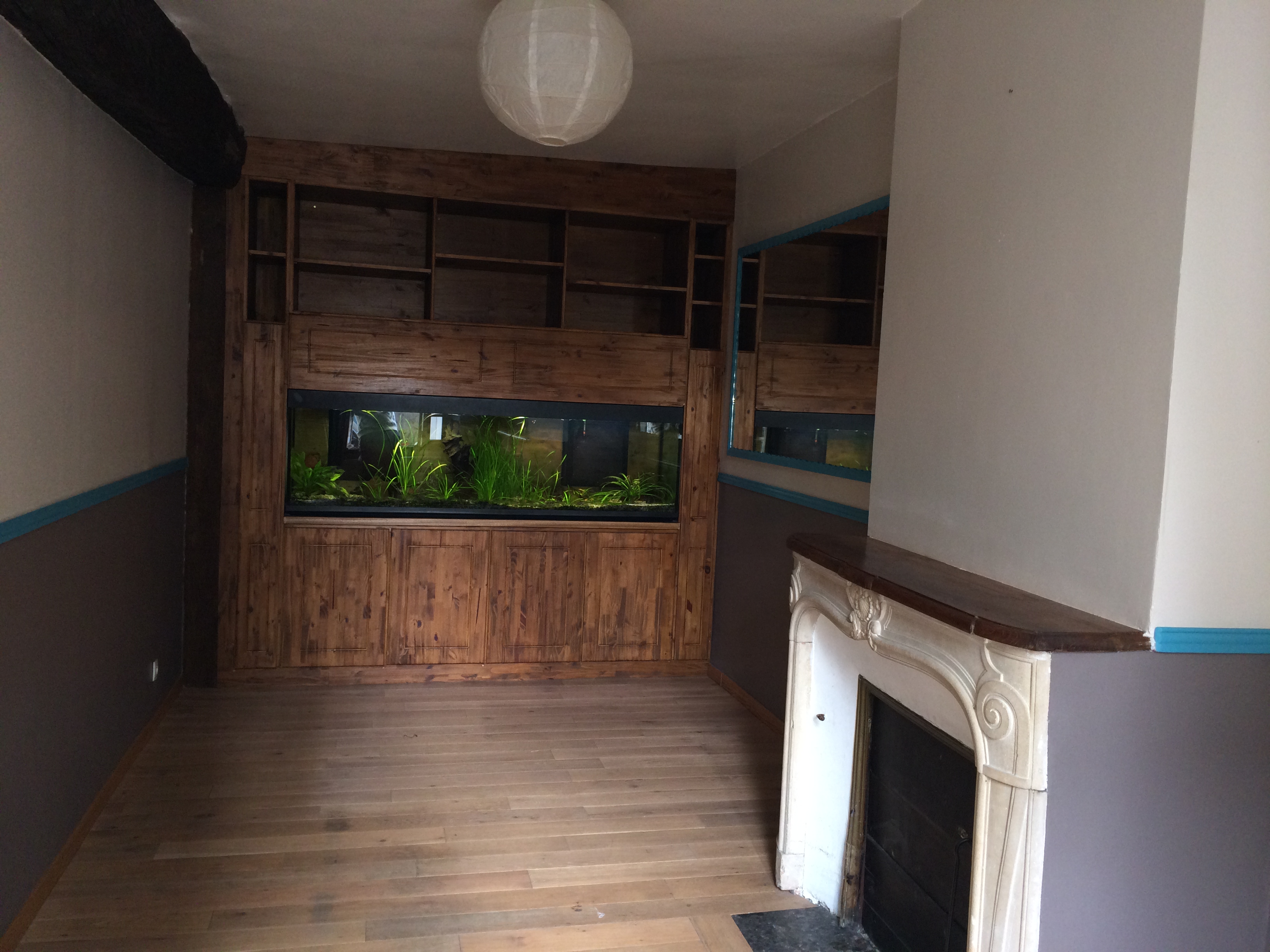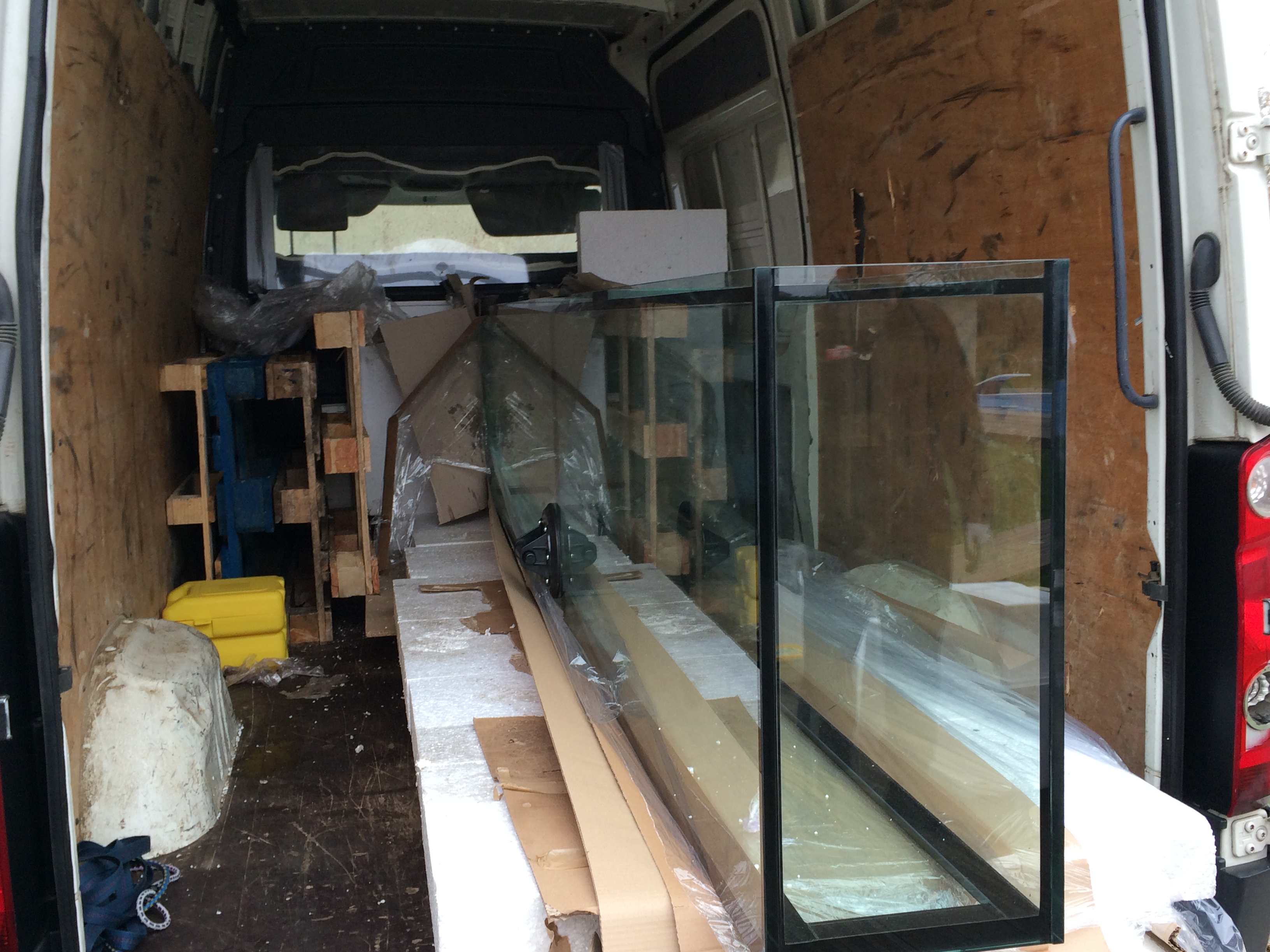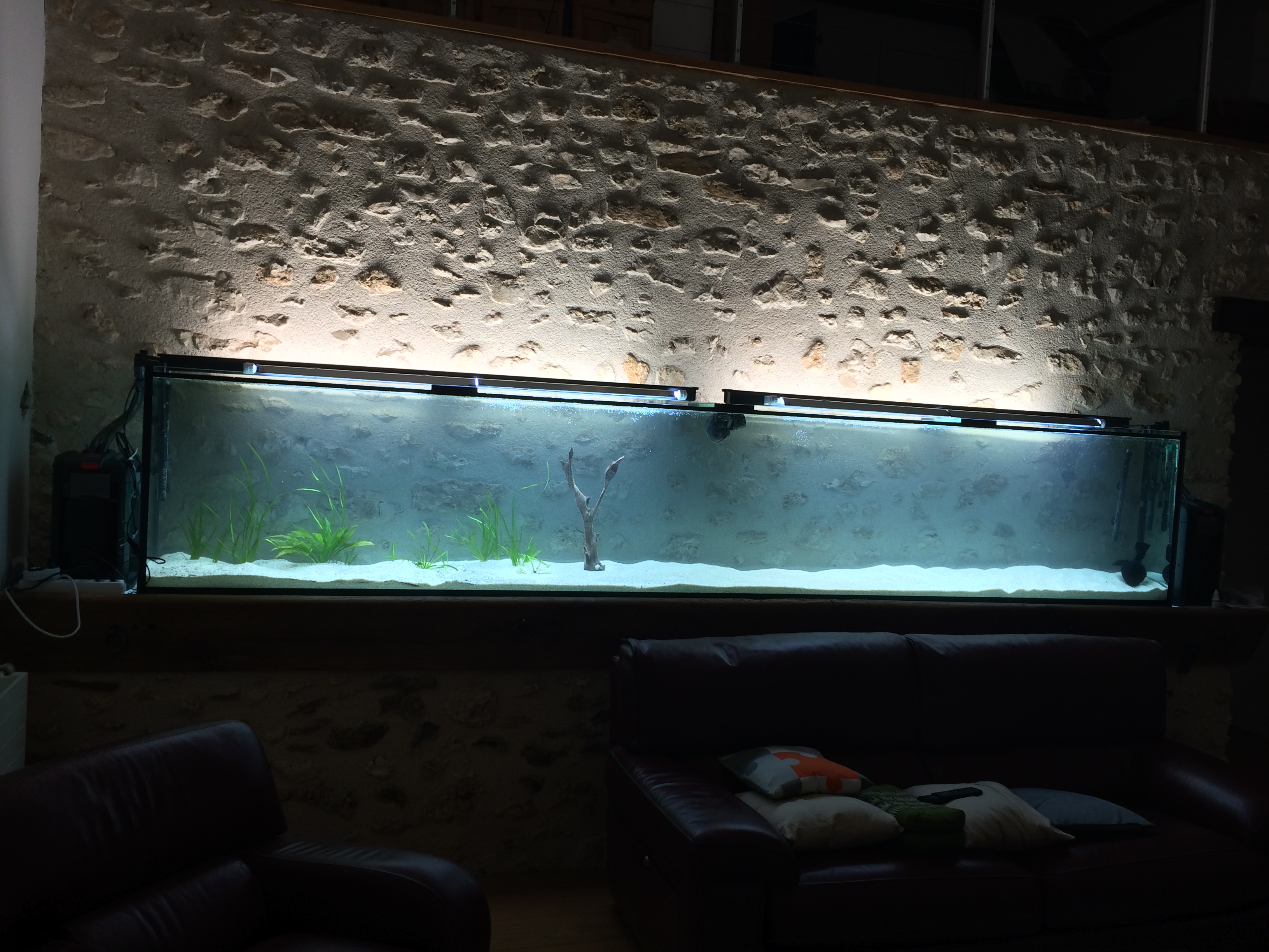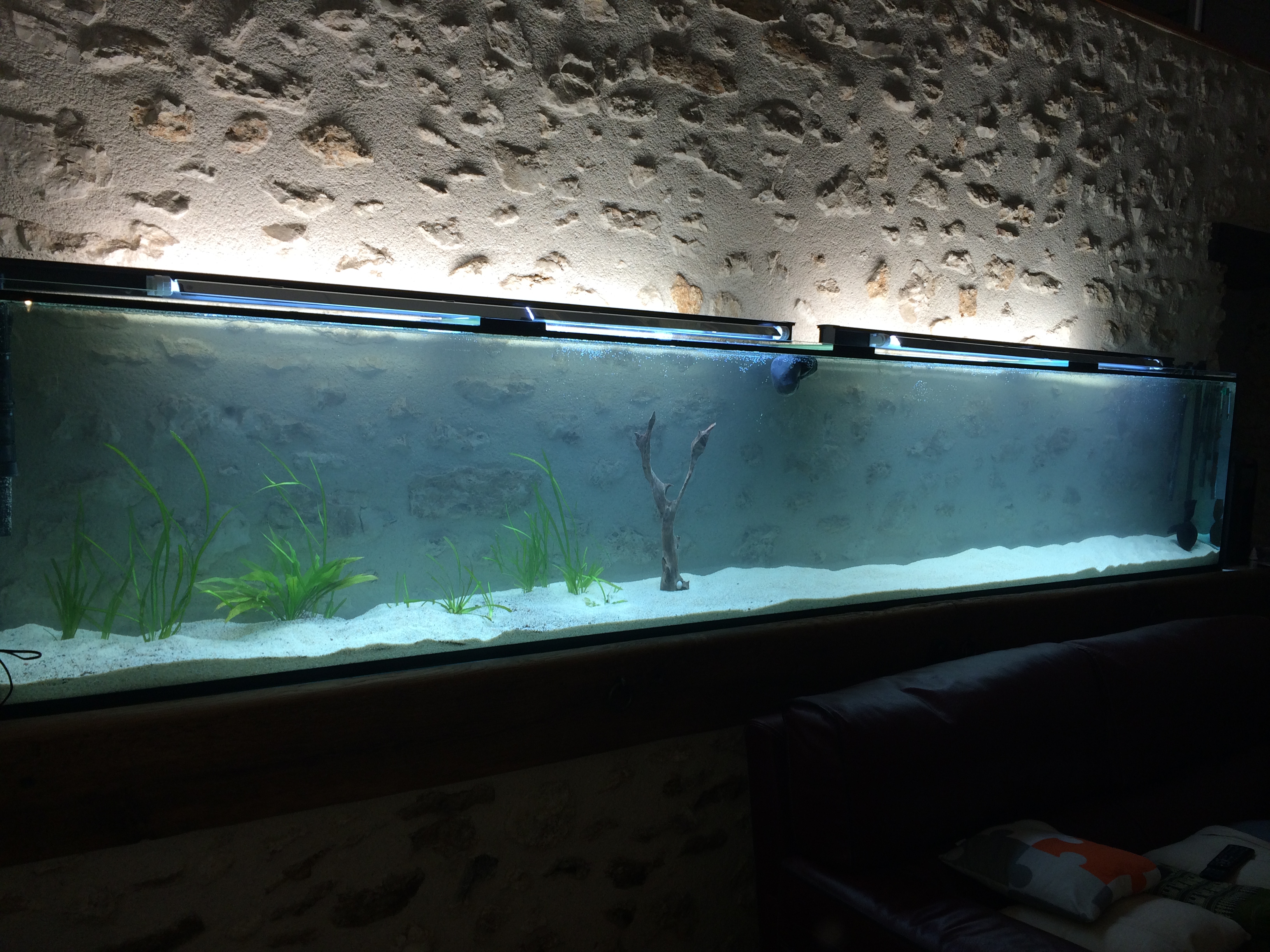 voila les premieres photos l ancien (2mx50X70) l nouveau dans le camion, avant la mise en place, pendant et apres, bientot plus de plantes et les poissons