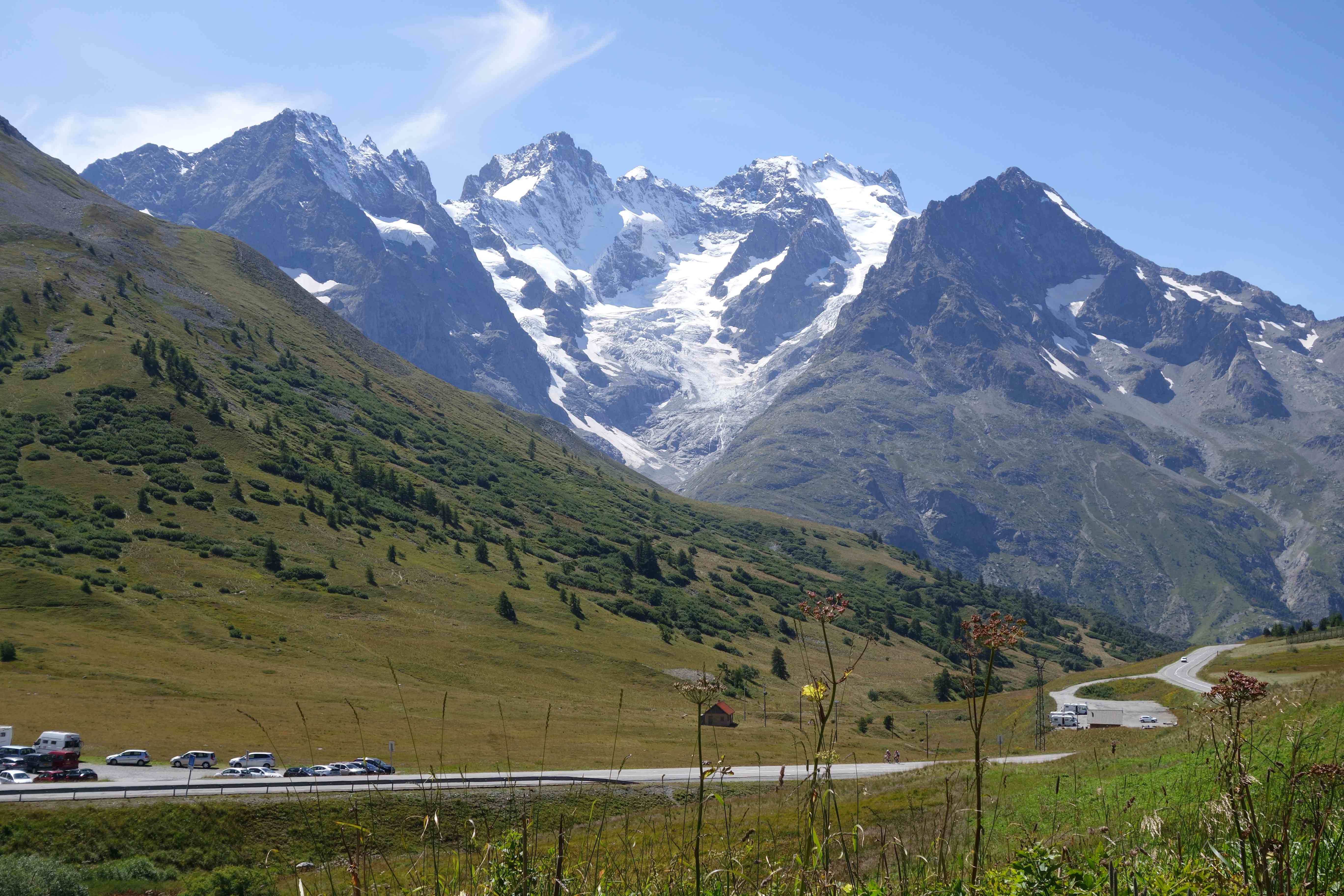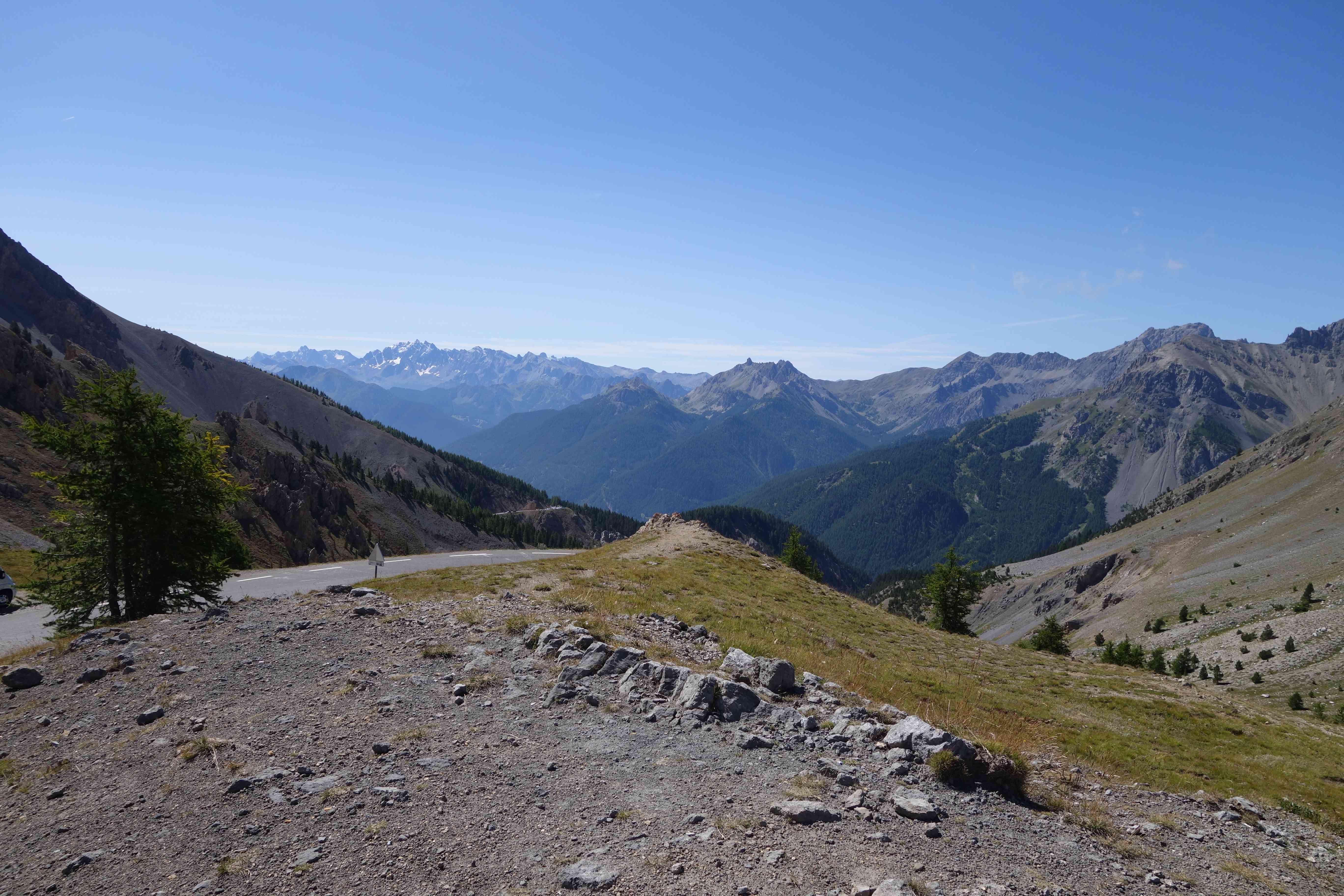 Descente du col de Vars vers Guillestre vue sur le massif des Ecrins