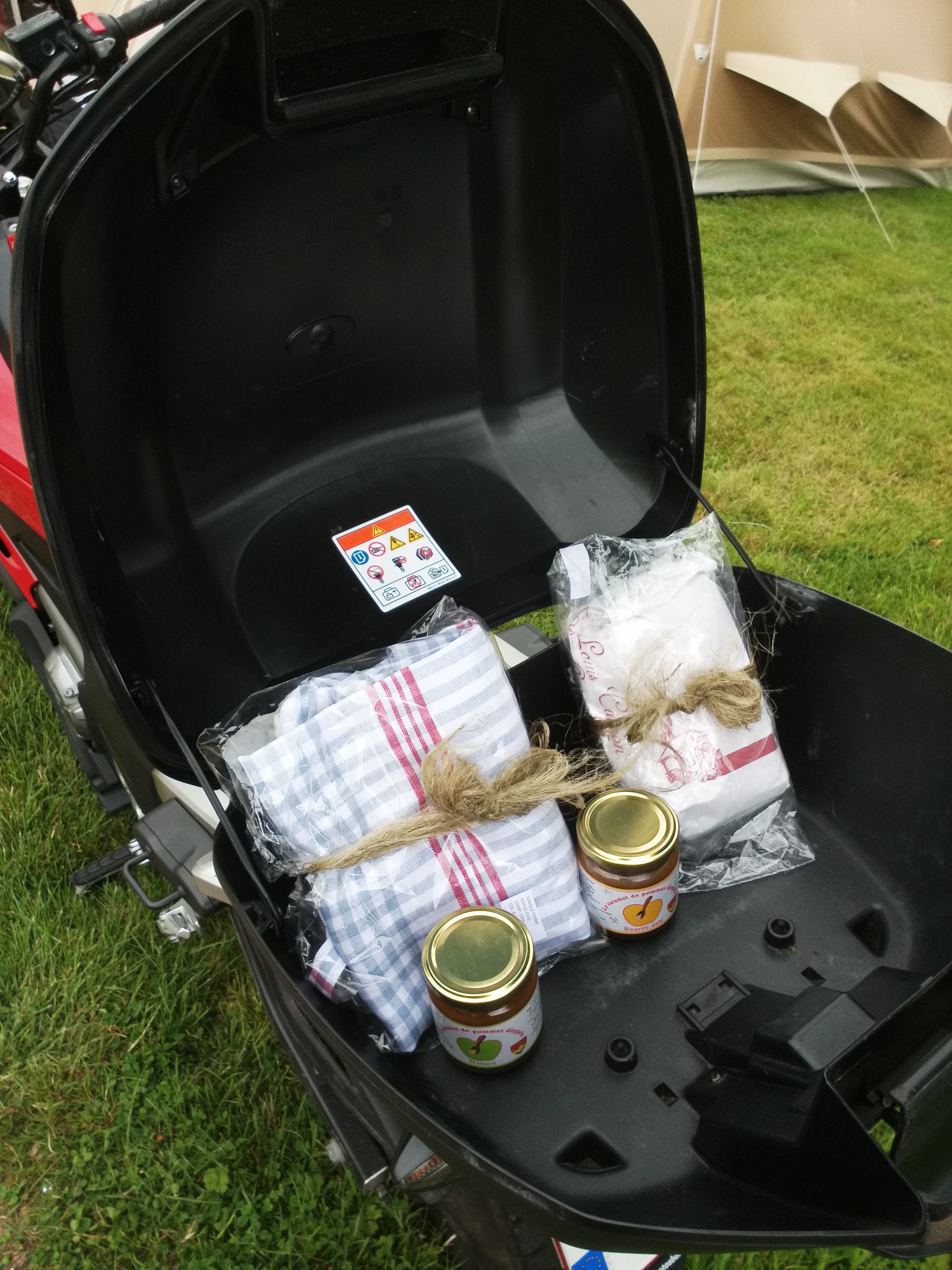 Elle a l'air bien confort ta tente, mais tu as mis tout ca sur la NC avec tables et chaises et passagère ? ;)