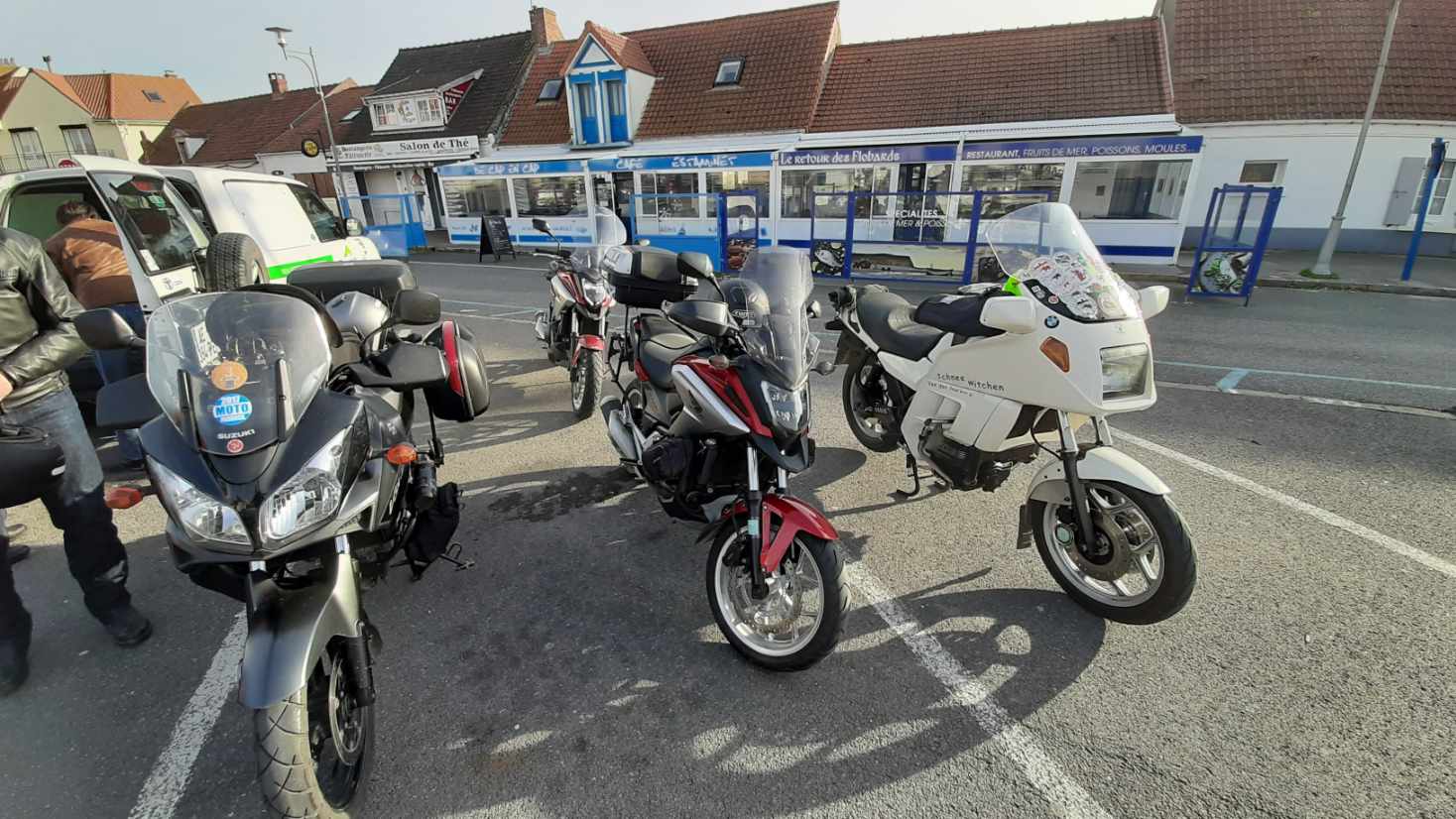 0° à 8h au départ d'Arras, 4° à midi à Audresselle (cherchez pas vous trouverez pas, c'est juste au-dessus de la mer à marée basse) et 0° à 17h au retour, donc une bonne moyenne. C'est tempéré comme ils disent à la météo. Y'en a trois qui sont en préparation des Elephantreffen en Teutonie ou encore Elephs pour les irréductibles Gaulois. Perso je passe mon tour, j'ai piscine le matin et macramé l’après midi. Donc pour les trois c'est de la rigolade, pour moi .... heuuu comment dire ? Brrrrrr rien que d'y repenser. Comme vous pouvez le remarquer, il faisait beau, vu les températures on regrettait presque la pluie.