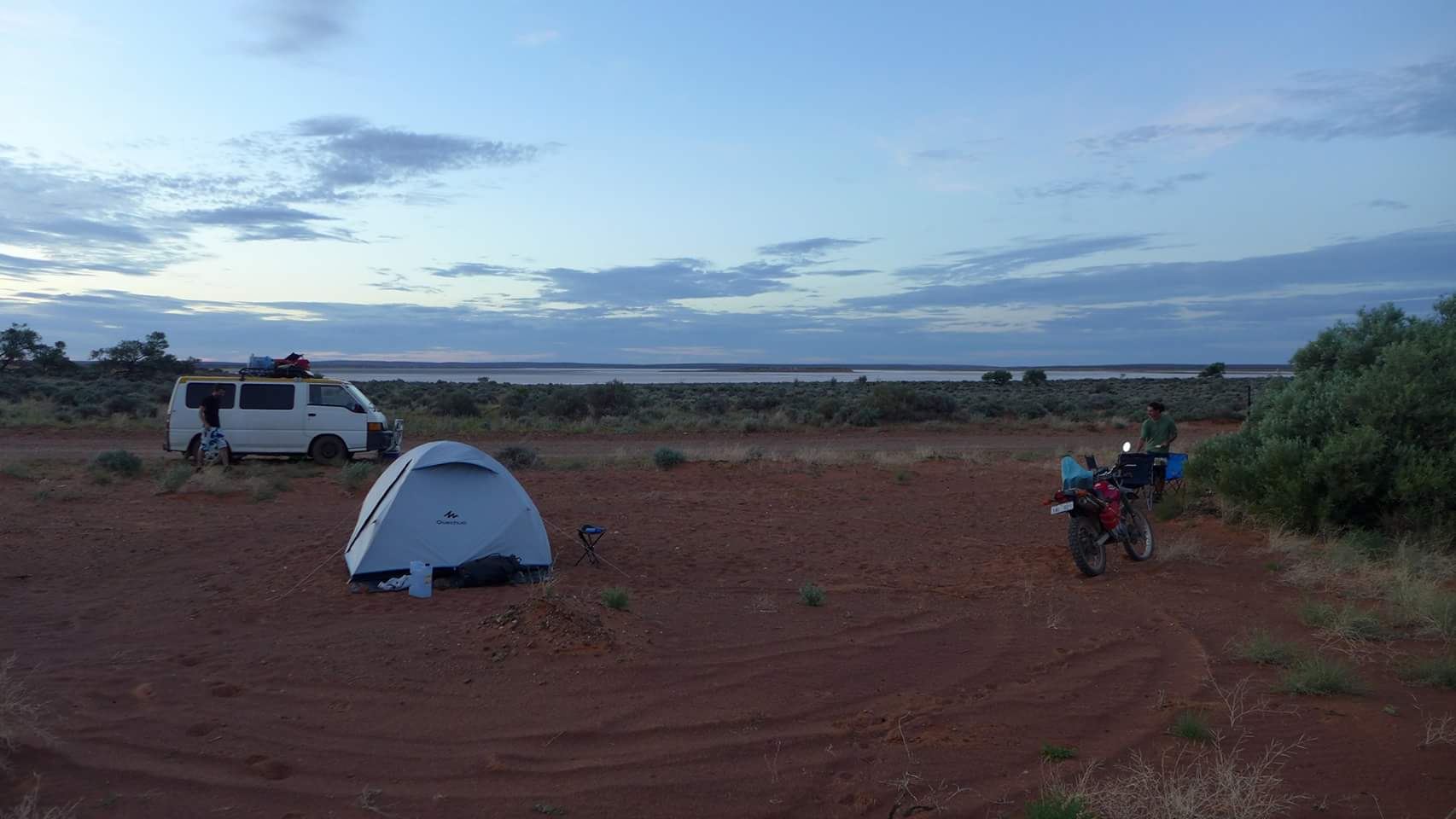 Bivouac à 120 km de piste du premier village avec 2 voyageurs français rencontrés sur la route, en montant vers Coober Pedy :