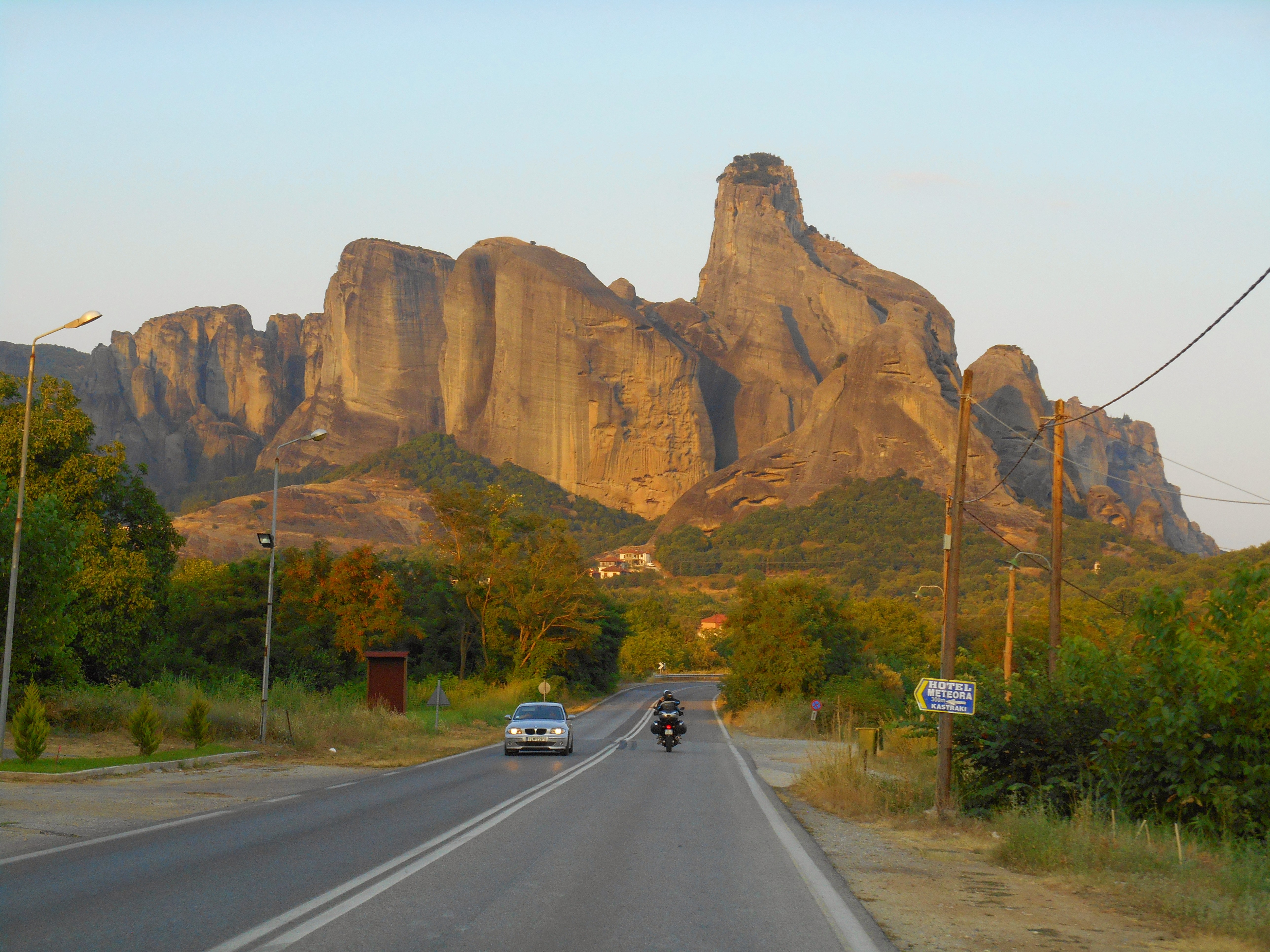 C'est par la Nationale 92 qui serpente à travers la montagne que nous arriverons à Kalambaka qui se trouve au pied Des Météores. Puis durant ces 15 jours de balade ,nous ferons halte à Delphes , longerons le détroit de Corinthe , pour arriver à Nauplie, puis descendrons sur Monemvassia par le bord de côte (superbe !) puis passage à Guitio,pour rejoindre Pilos via Stoupa et Kalamata. Et enfin nous ré embarquerons à Patras soit le tour du Péloponnèse.
