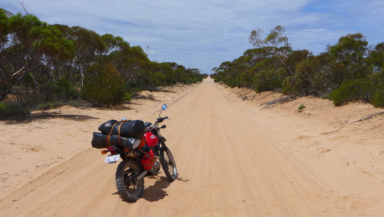 J'ai fait l’Australie d'Ouest en Est avec une Honda 230 SL. Et pourtant équipé j'approche le quintal, et j'avais bagages + matos de camping + jerrycan de secours.
