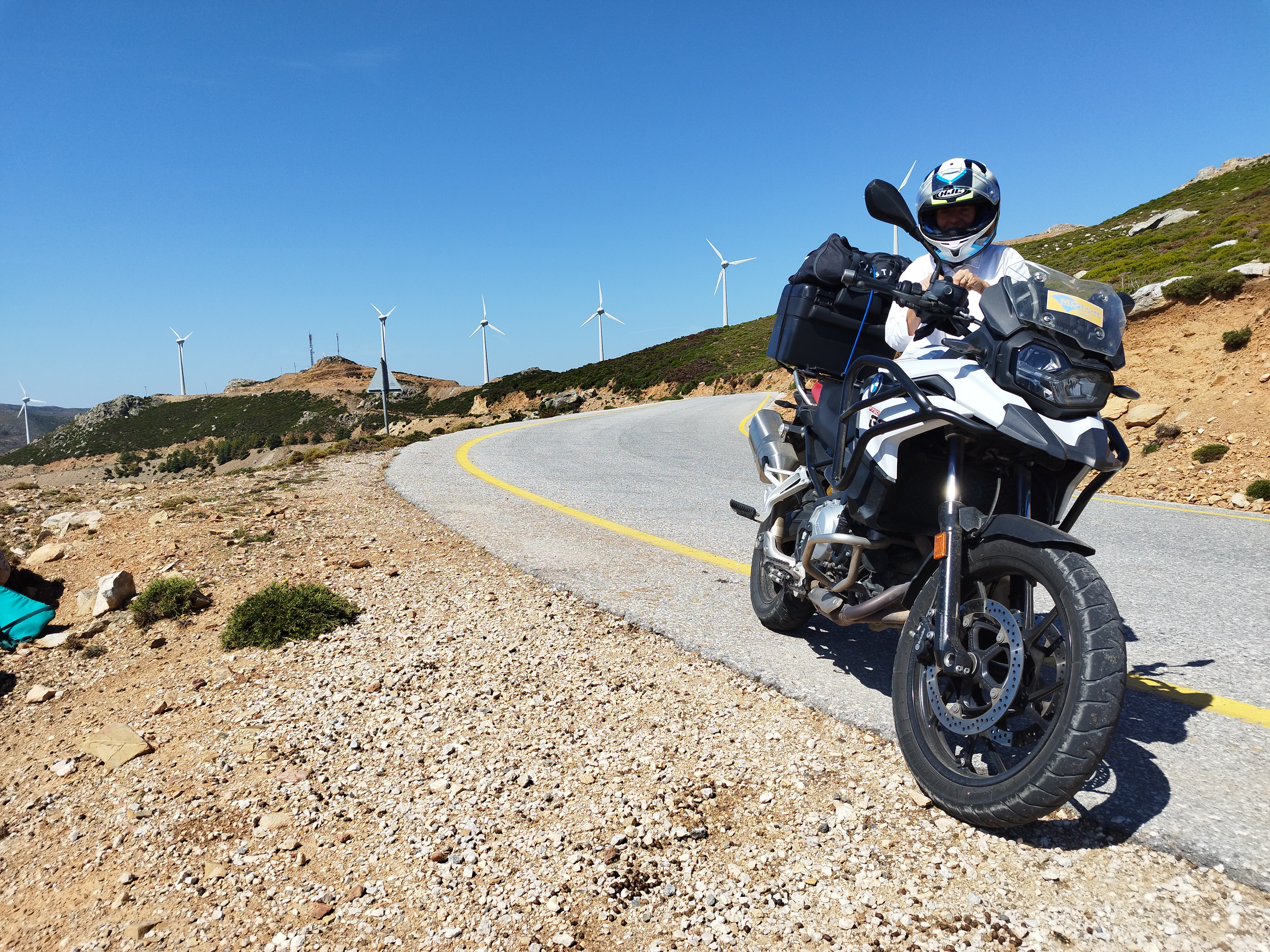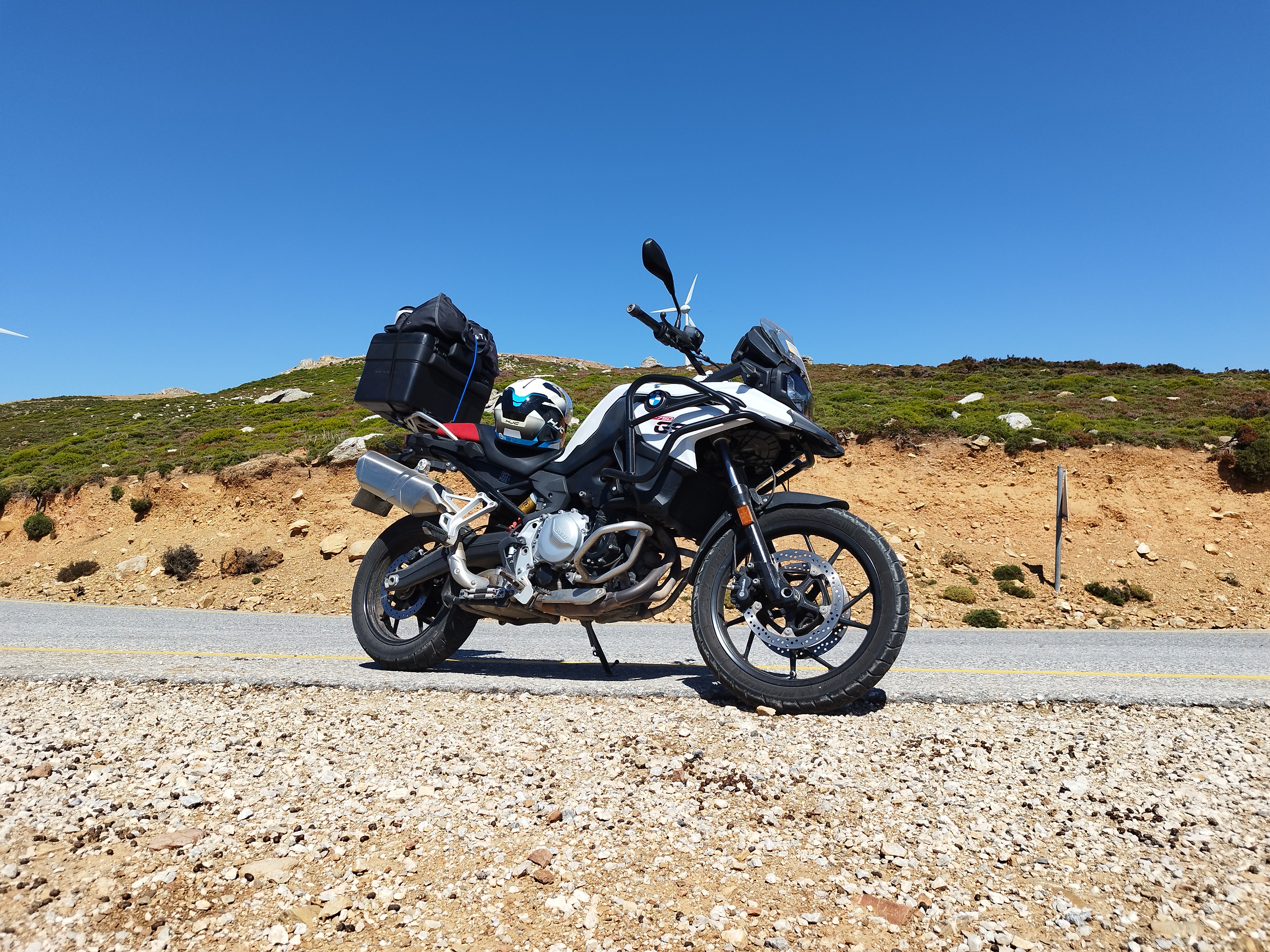 Bonjour depuis la Crète. J'ai abandonné mon brélon pour 3 semaines. Nouveau road trip à deux en Crète. Cette année avec une BMW F 750 GS louée à Agios Nikolaos chez Motor Holidays. J'ai retrouvé l'usage de mon pied et de ma main gauche pour passer les vitesses. Il y a un shifter mais je suis trop c... Un top case associé à un léger sac de voyage tenu par 3 tendeurs pour 3 semaines. Cette moto est très agréable et confortable. Entre 1h30 et 2h de route chaque jour en conduite cool : Agios Nikolaos, Zaros, Georgioupoli, Chania, Falassarna, Balos, Omalos, Kalyves, Loutro, Agia Galini, Heraklion, Myrtos, Agios Nikolaos. Bonne fin d'été. Dominique