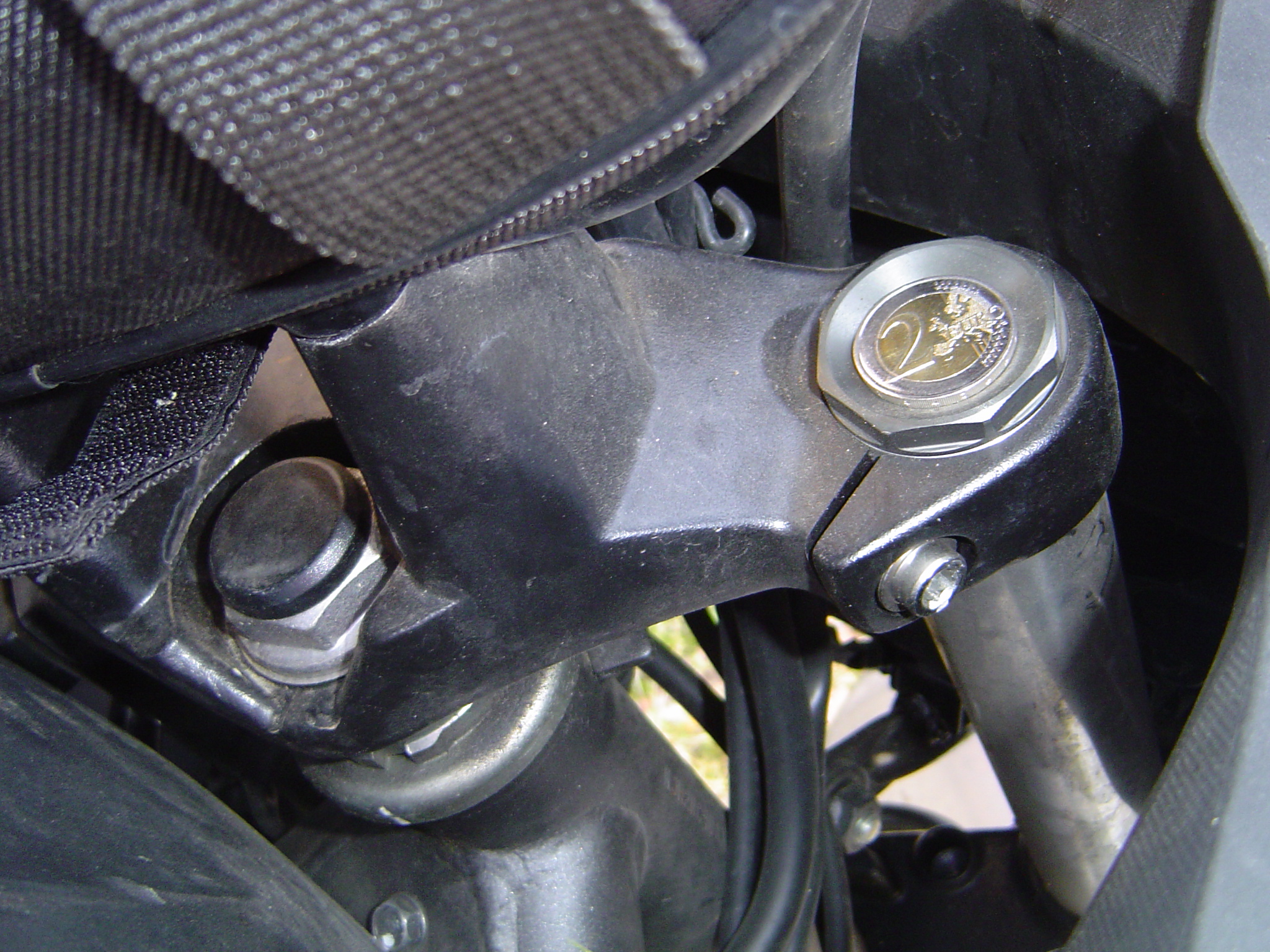 ...et pense à desserrer le té supérieur avant de retirer les bouchons de tube. Dans tous les cas, si c'est pour vidanger l'huile de fourche, le meiux est de retirer les deux tubes pour faire un travail propre et complet.