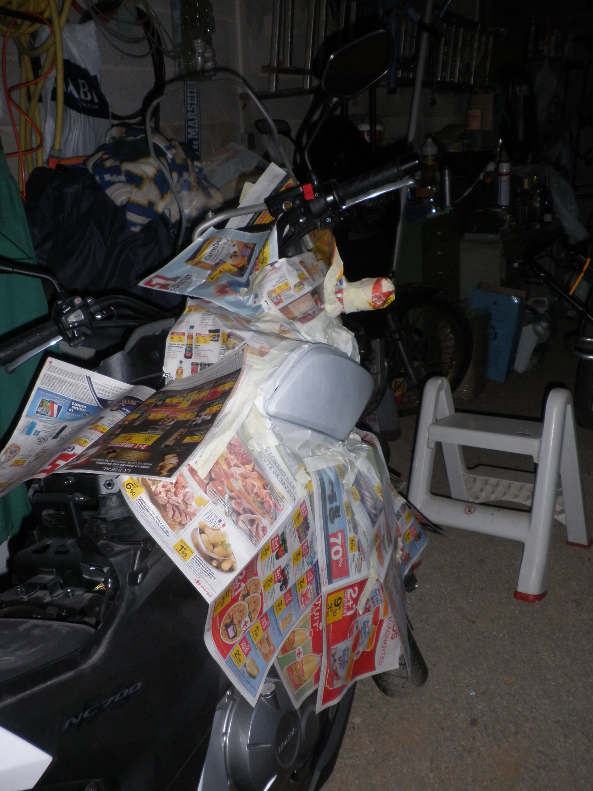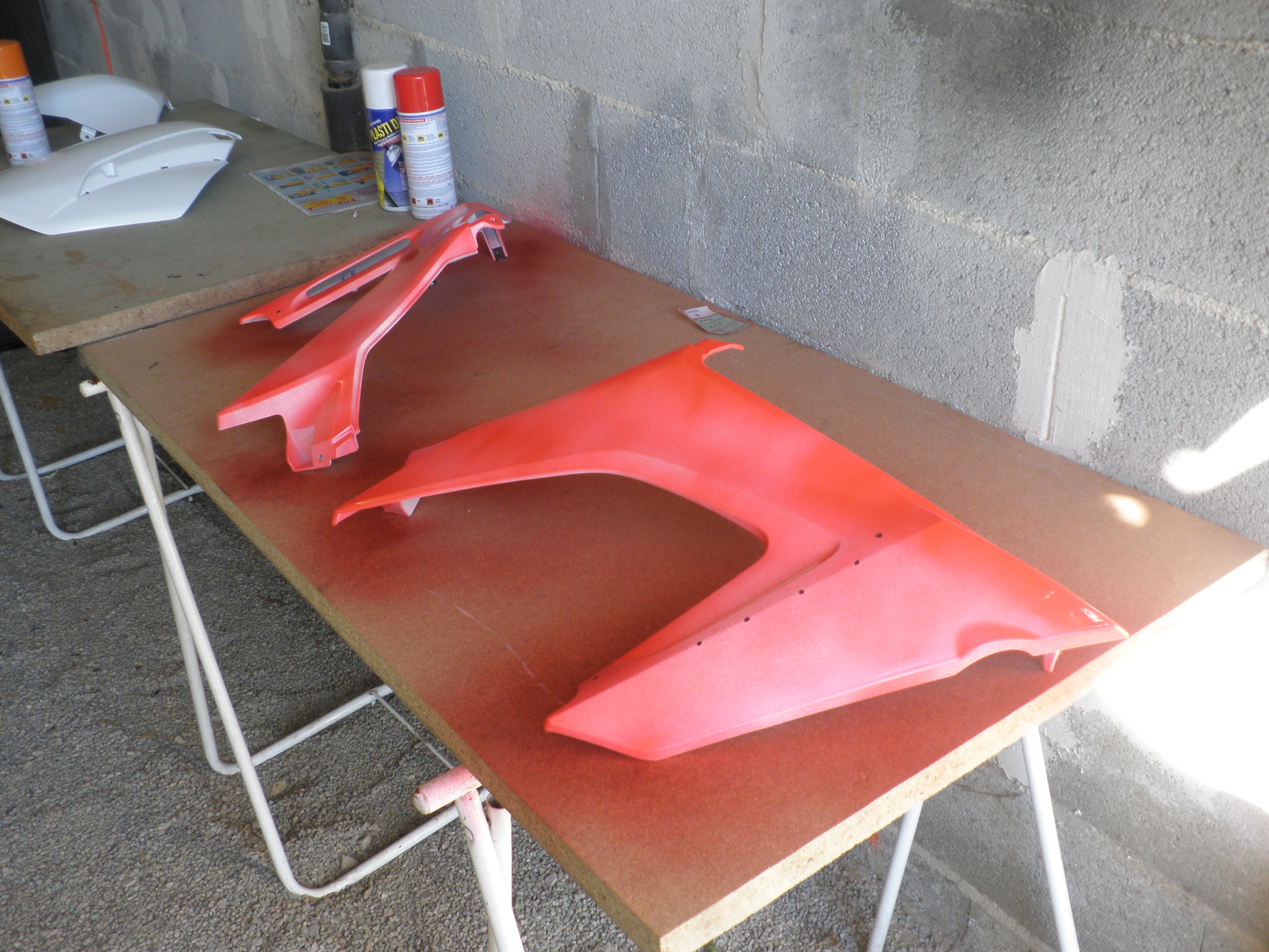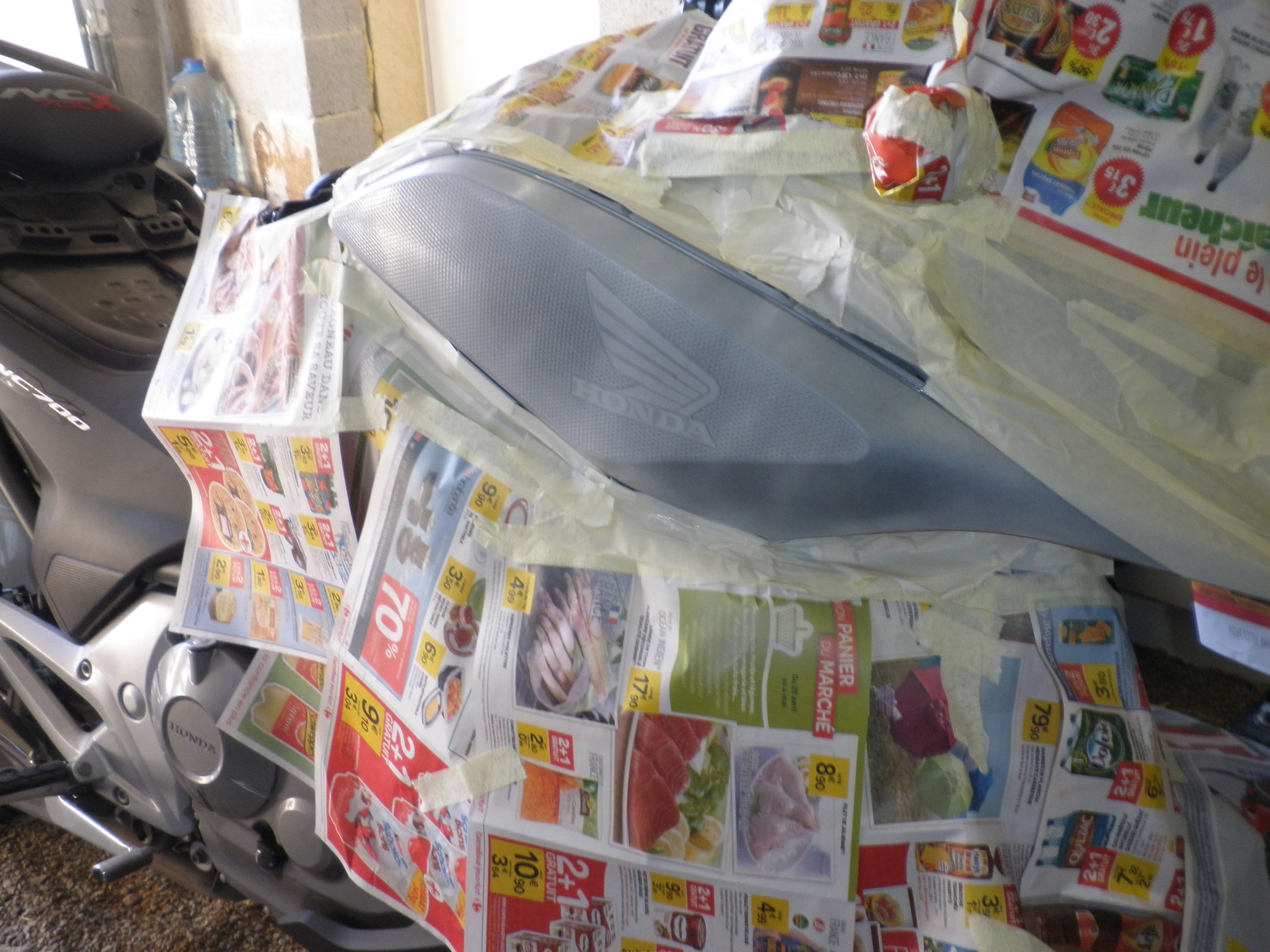 Le blanc : partie la plus délicate car ce n'est pas lisse je pense que le logo Honda va encore ressortir après les moultes couches .