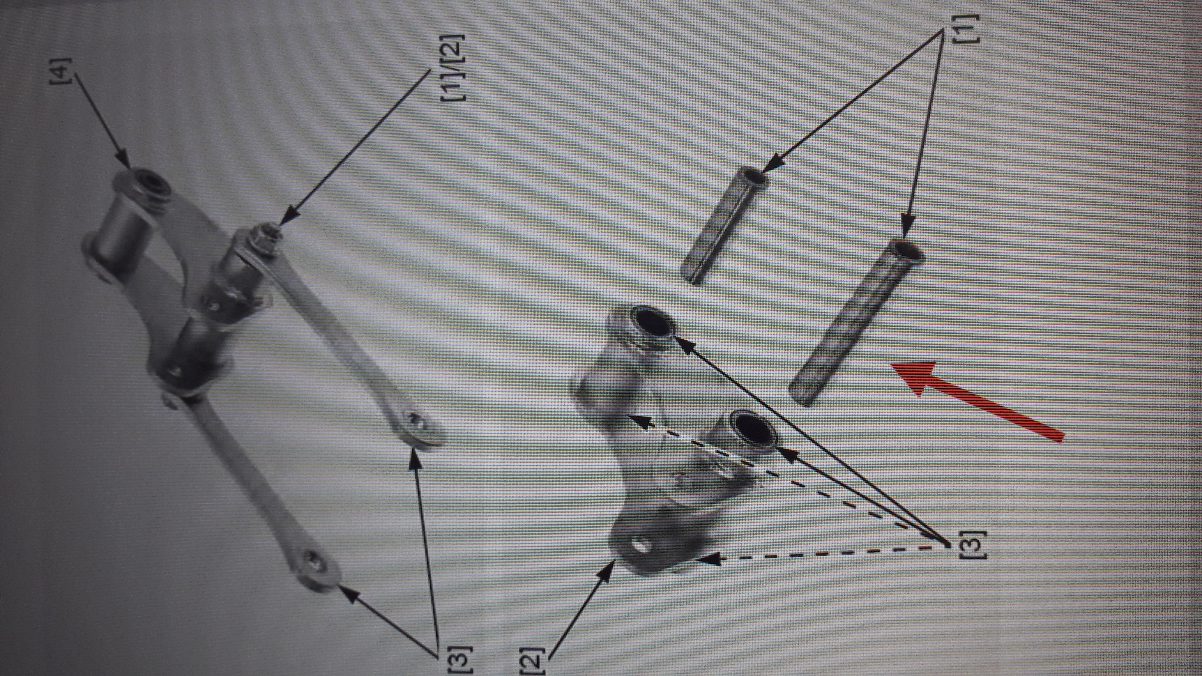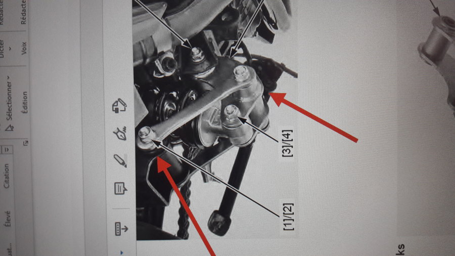 J'en ai une troisième qui est tombée de l'espèce de cylindre quo sort en partie avec l'axe. Les deux axes (grandes vis) haut et bas ou se trouve les bielettes ne sortent pas (cf. Page 626 du manuel). Les deux grandes vis arrivent en butée à gauche et entriane les sortent de cylindres lorsque je dévisse côté gauche. Et j'ai déposé le silencieux.