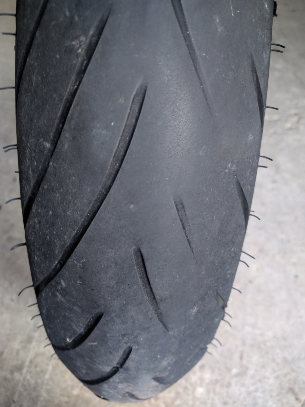 Voila la tète de mon avant, un Dunlop roadsmart II il a dans les 7000 km c'est pas beaucoup pour être comme ça...