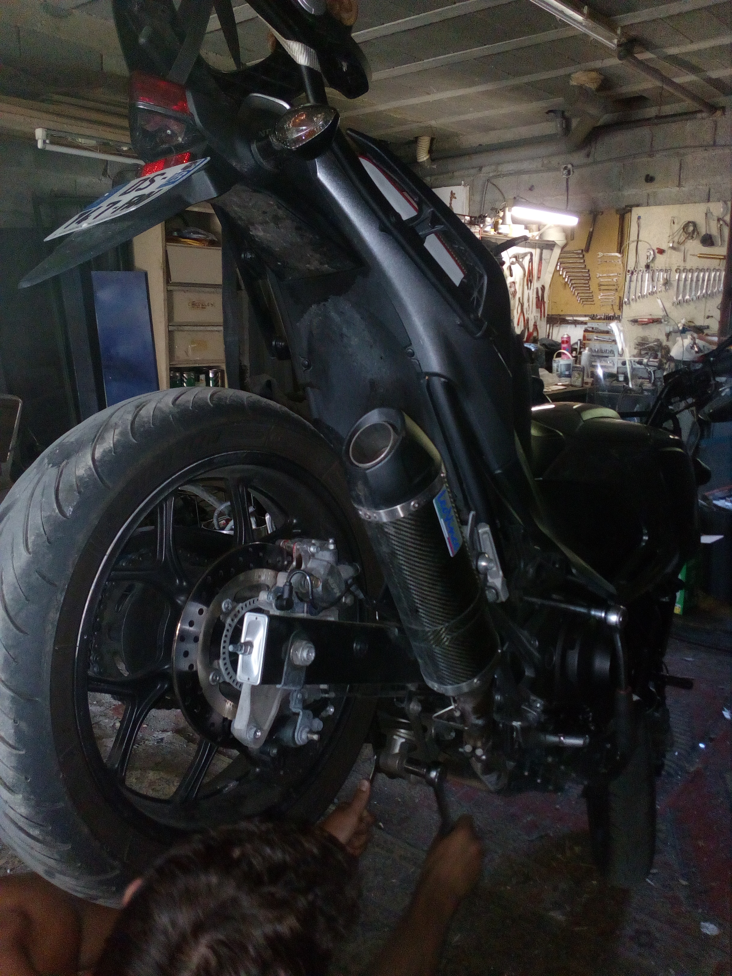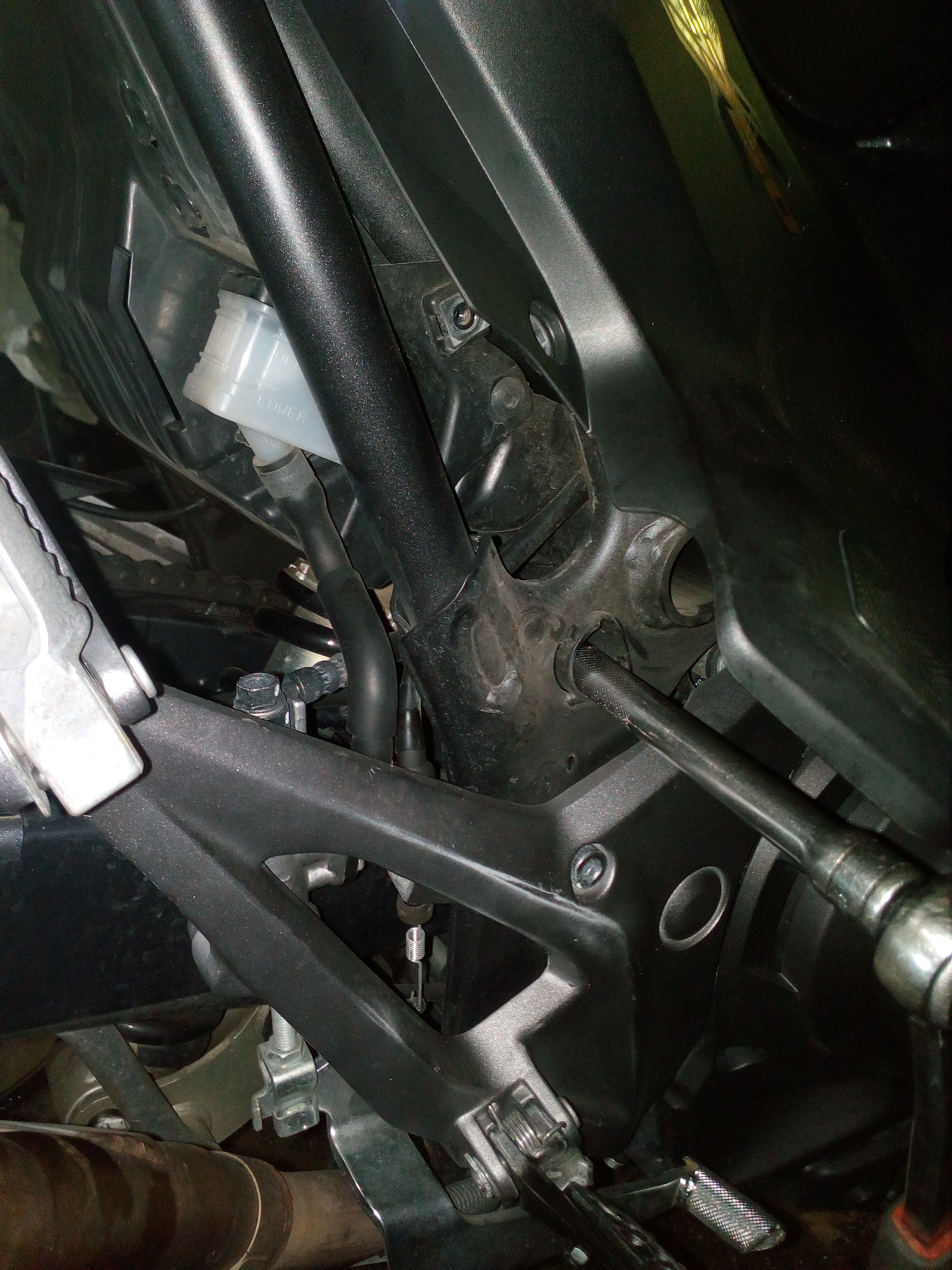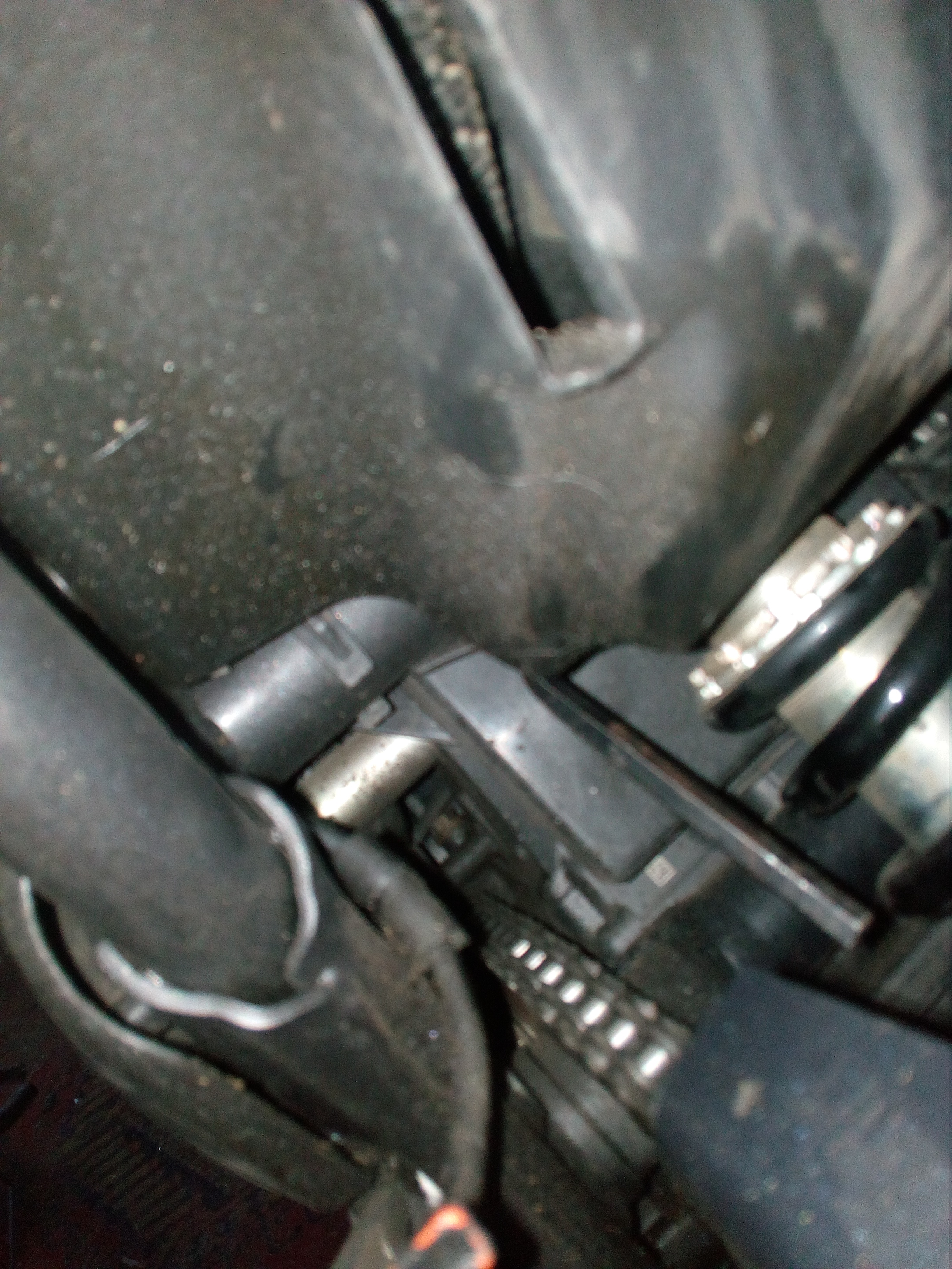 On enlève les deux vis dessous et hop l'amorto tombe ( astuce, on remonte la roue à fond et on la sangle pour le remontage)