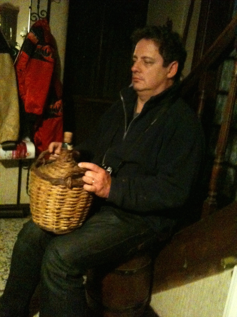 Mon pote Pascal et la bonbonne de fruits du jardin