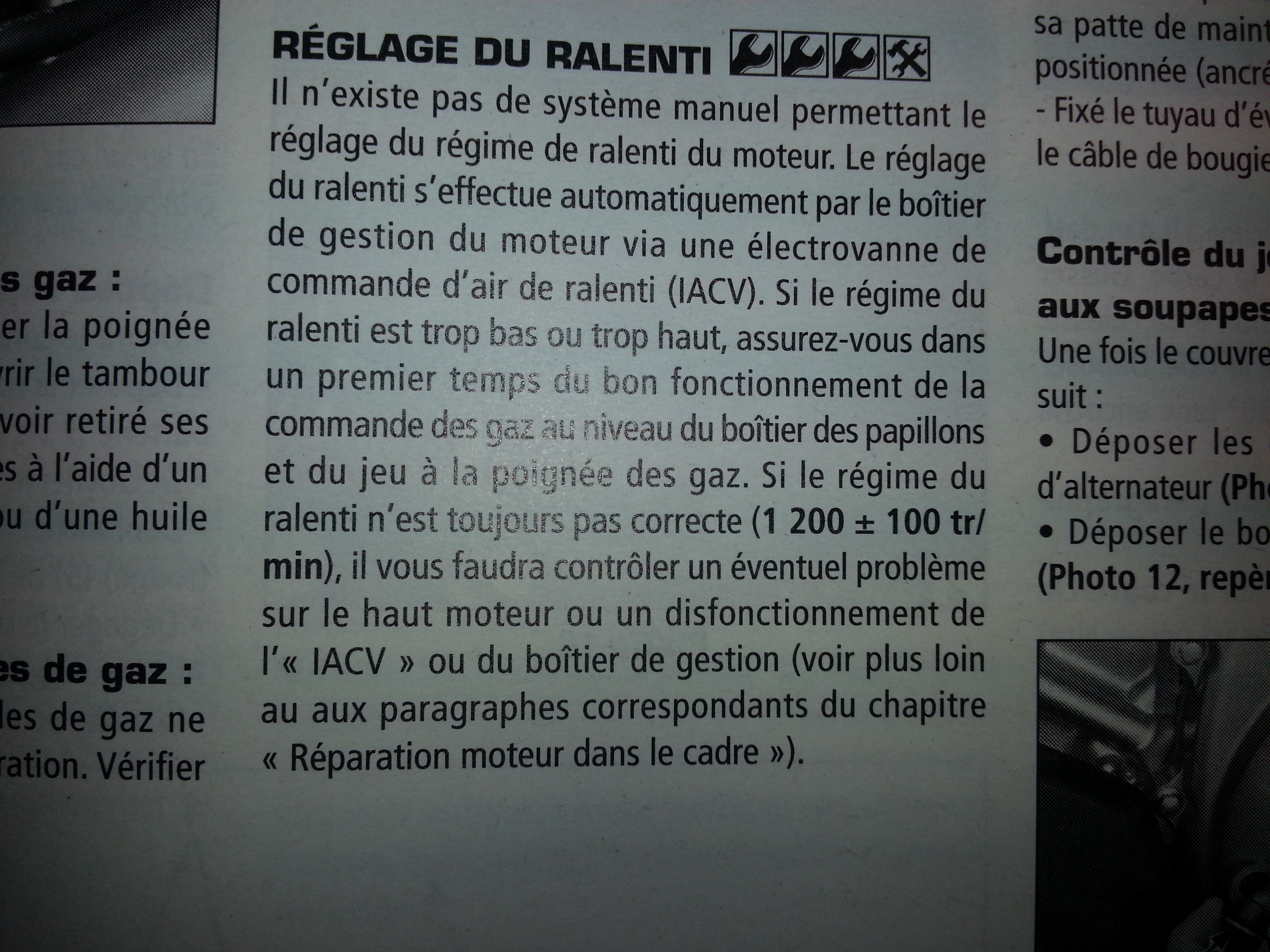 Mais la doc Honda indique qu'après les réglages de soupapes une vérification du ralenti doit être faite et si besoin il y a possibilité de "réapprendre" le point zéro du capteur d'accélération. A suivre ...