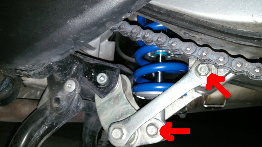 Les écrous de 17 jaunes sont la précontraintes des ressorts, dévissés complètement par défaut (normalement les ressorts sont tarés à vos besoin)