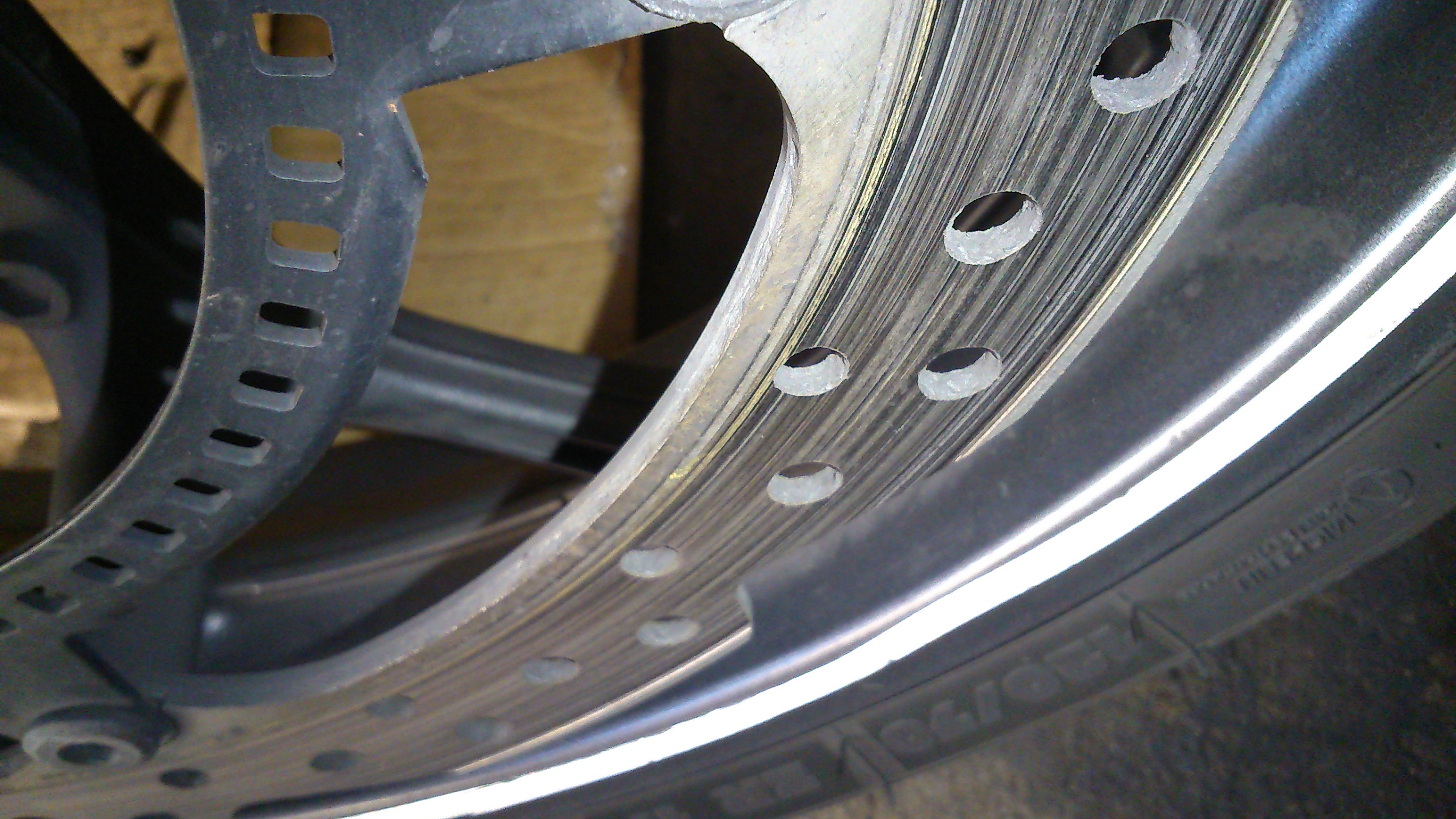 Je vais profiter d'un changement de plaquettes de frein pour remplacer mon disque avant. La moto a bientôt 65 000km, le disque est creusé déjà depuis longtemps et mesure 4,1mm d'épaisseur. Pour un disque neuf, le manuel d'atelier indique une épasseur comprise entre 4,8 et 5,2mm. Il est indiqué sur le disque de ne pas aller au delà de 4mm.