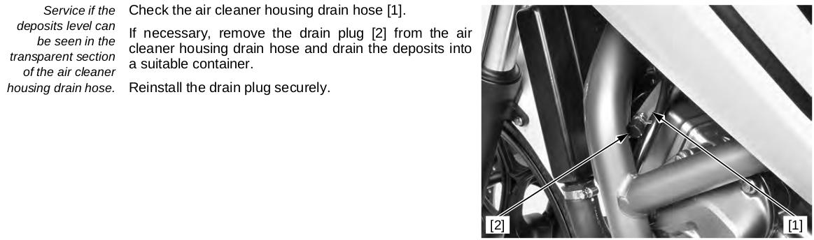 Pour NC x ou S, le bout du tuyau de vidange du filtre à air. Bouché, l'air ne doit pas entrer par là.