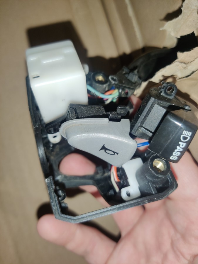 Du coup quand j'ai démonté le carénage pour changer l'inverseur pour mon klaxon (Origine + Trompes) je me suis attelé à démonter le comodo pour voir ce que je pouvais faire pour le clignotant.
