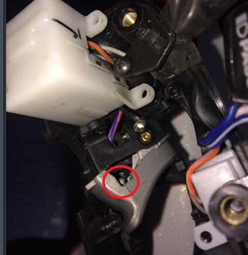 Pour ouvrir complètement l'ensemble du commodo, il faudrait enlever le levier des clignotants, j'ai pas su faire.
