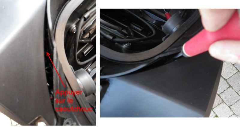 Pour bien s'assurer que le caoutchouc est bien remis on peut le voir par ce petit interstice et s'il faut, appuyer sur le caoutchouc avec un petit outil.