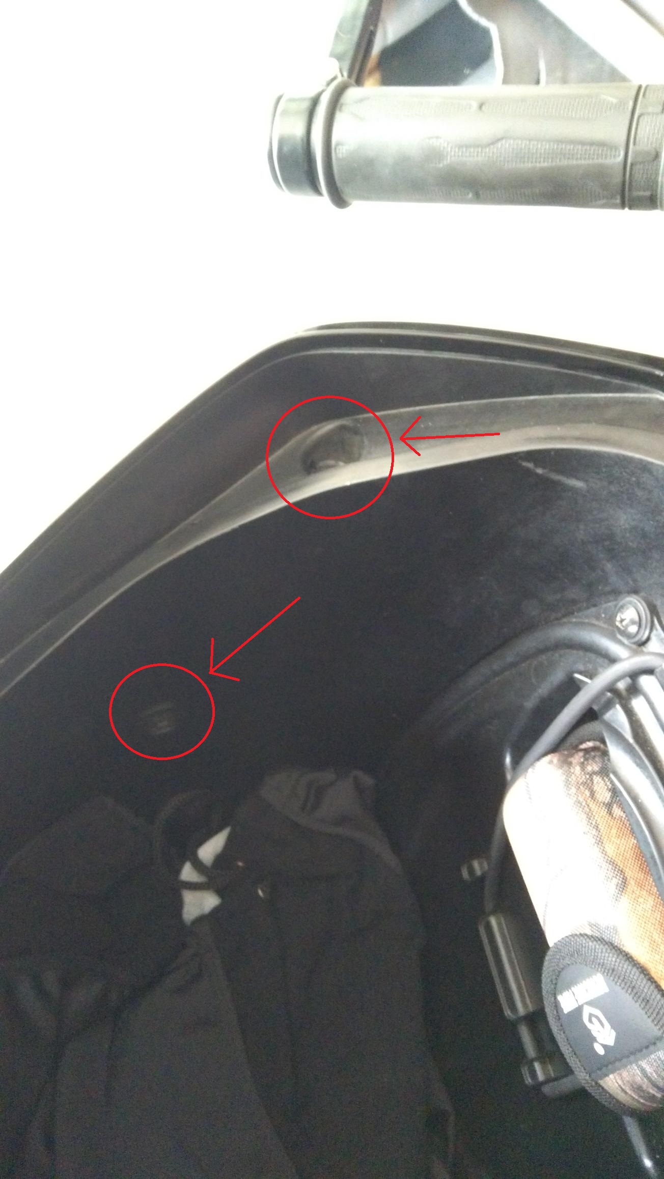 .<br />Une fois toutes les visses enlevées,<br /> il faudra forcer un peu en tirant sur le flanc du faux reservoir<br />car il est plutot bien clipsé avec le carenage noir mat qui se trouve en dessous. <br />( il faudra gentillement tapper a la main pour que ca replipse au montage )
