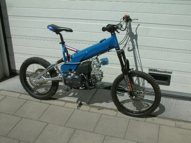 SP94TT A 16 ans licence A1 en poche une 125, achetée d'occaz' dans cet état puis très rapidement transformée en bécane de MX (si si !) garde-boue Preston & Petty, petit phare de chantier devant, petit feu rouge de trial et plaque en caoutchouc derrière, amortisseurs Telesco, pneus cross, selle recoupée (par mes soins), peinture refaite (à la Bultaco Pur-sang) Ensuite ce fût ma période mini-bike avec un GT80 (pareil, il a eu droit à une simplification extrême côté look ...