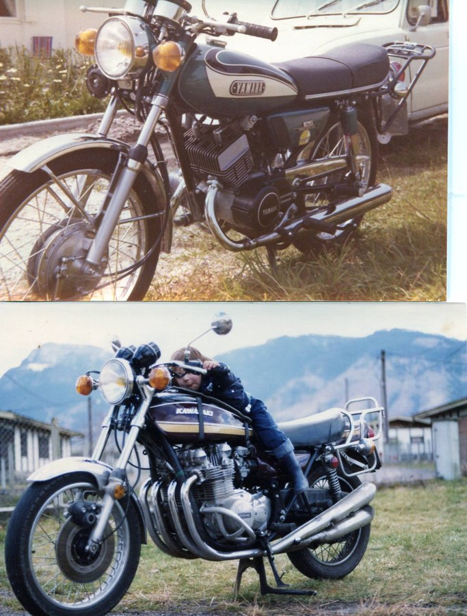 En photo La 125 et la Z1, le décor n'est pas mieux : Pour celle d'après, ou plutôt en seconde moto avec la Kawa, je n'ai pas de photo. Donc recherche sur le net et voilà : Avec la T500 la relation n'a pas duré très longtemps, elle picolait trop et pas que de l'essence. Mais j'ai le souvenir d'un vélo.