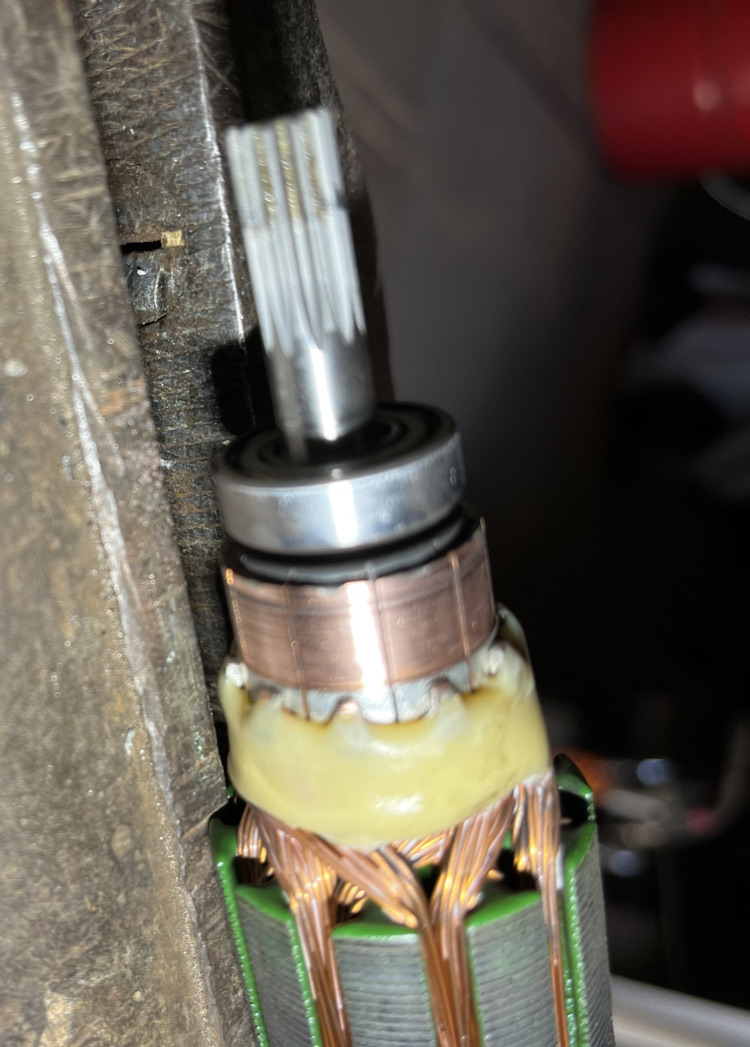 [/img] voici un aperçu du rotor avant nettoyage photo du bas et du haut après réfection du collecteur , j'espère que tu vas mieux te rendre compte de ce qui peux se passer , et que tu vas pouvoir solutionner ce problème sans que ça te coûte un bras , tu nous tiens au courant