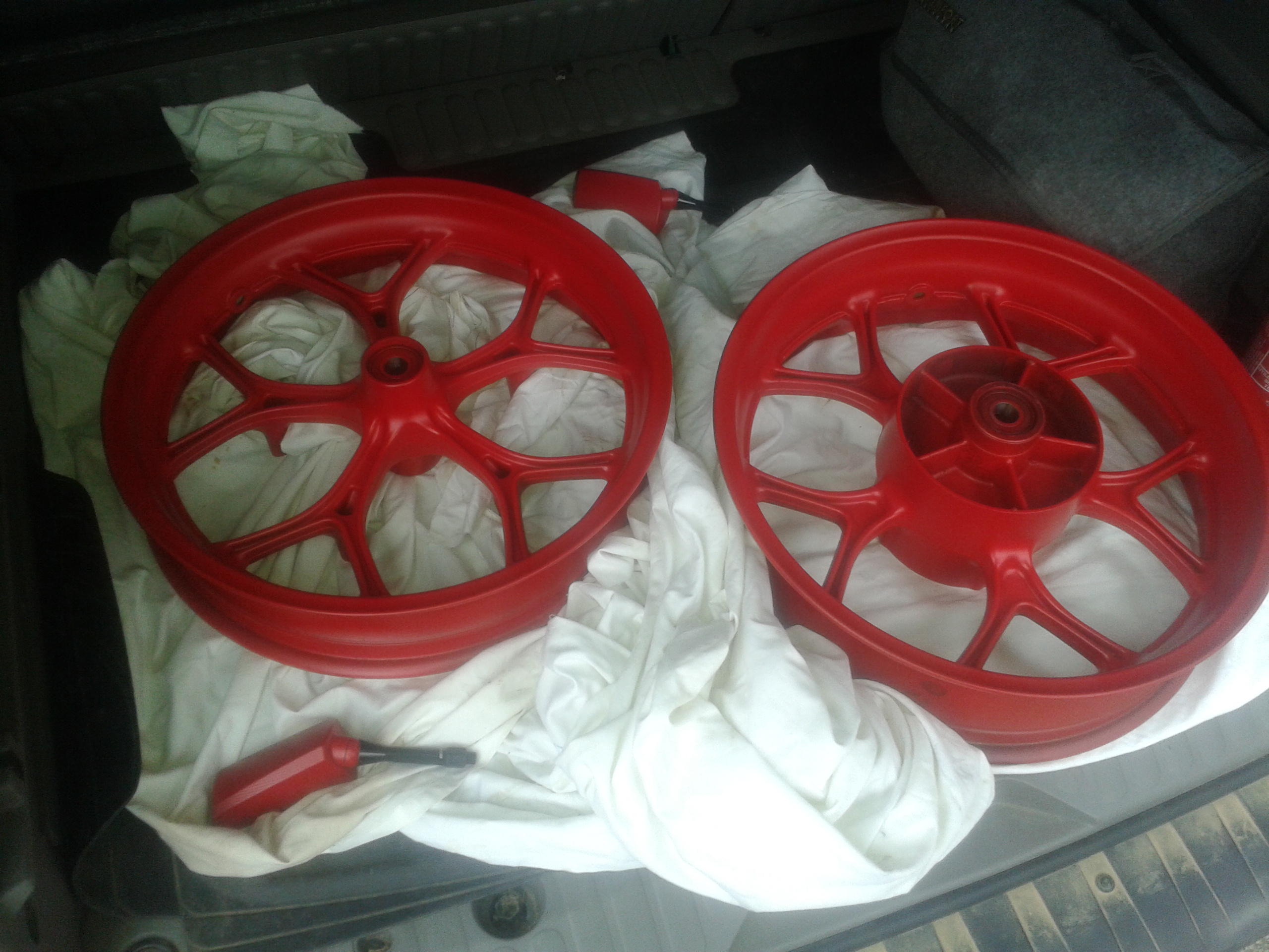 C'est exactement le rouge que je voudrais pour les jantes de mon integra 750 gris mat