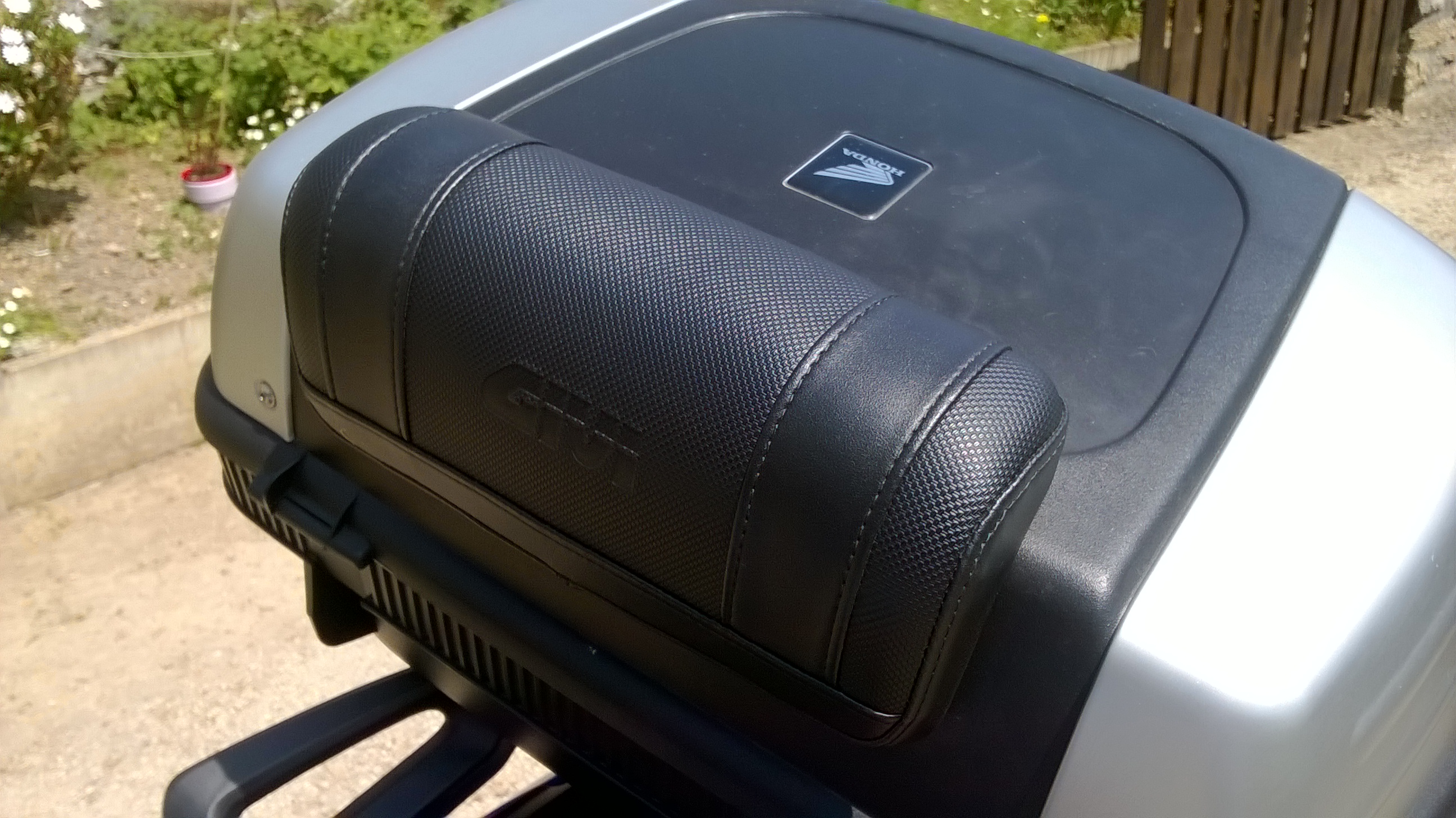 avec le top-case Honda : avec l'ajout d'un dosseret pour la passagère : Puis en version longue distance avec 2 valises Shad SH36 : avec des supports assez discrets : puis changement des embouts de guidon : et l'ajout d'une béquille centrale (grace à bep006) : Voilà, bonne soirée...