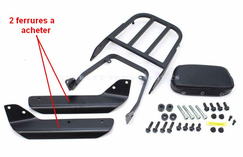 Salut, je ne sait pas si Honda détail les 2 ferrures de fixation de sissi-bar ?, photo ci-dessous, si oui, tu les achétent et tu achéte comme moi un porte bagage bon marché ou tu pourra fixer n'importe qu'elle platine de top case.