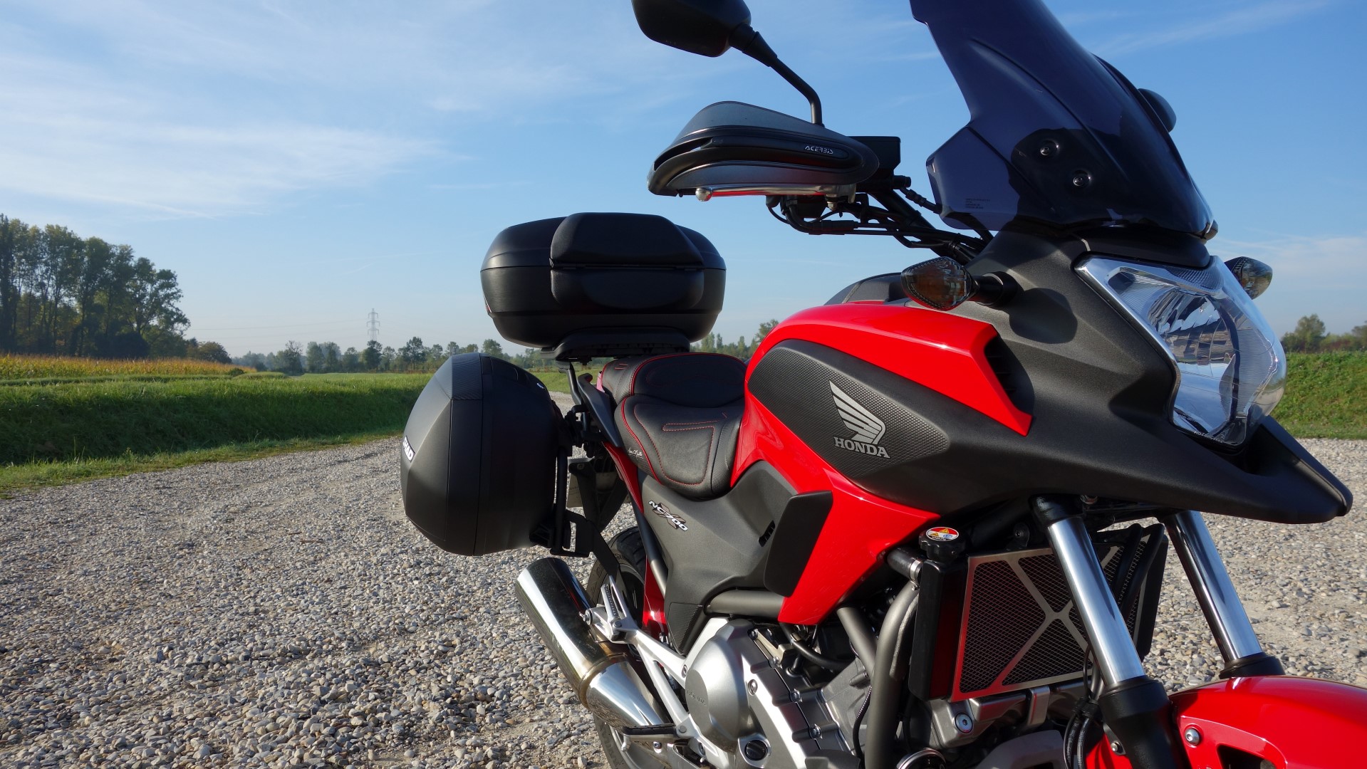 Petite séance photos matinale après avoir monté top case SH48 et valises SH36 SHAD ! Bravo à SHAD pour le support des valises qui ne défigure pas trop la moto (c'est aussi pour ça que je l'ai pris), pour la serrure supplémentaire livrée avec les valises et aussi pour les sacs qui semblent de bonne qualité ! par contre le changement de la serrure du top case est un peu galère...