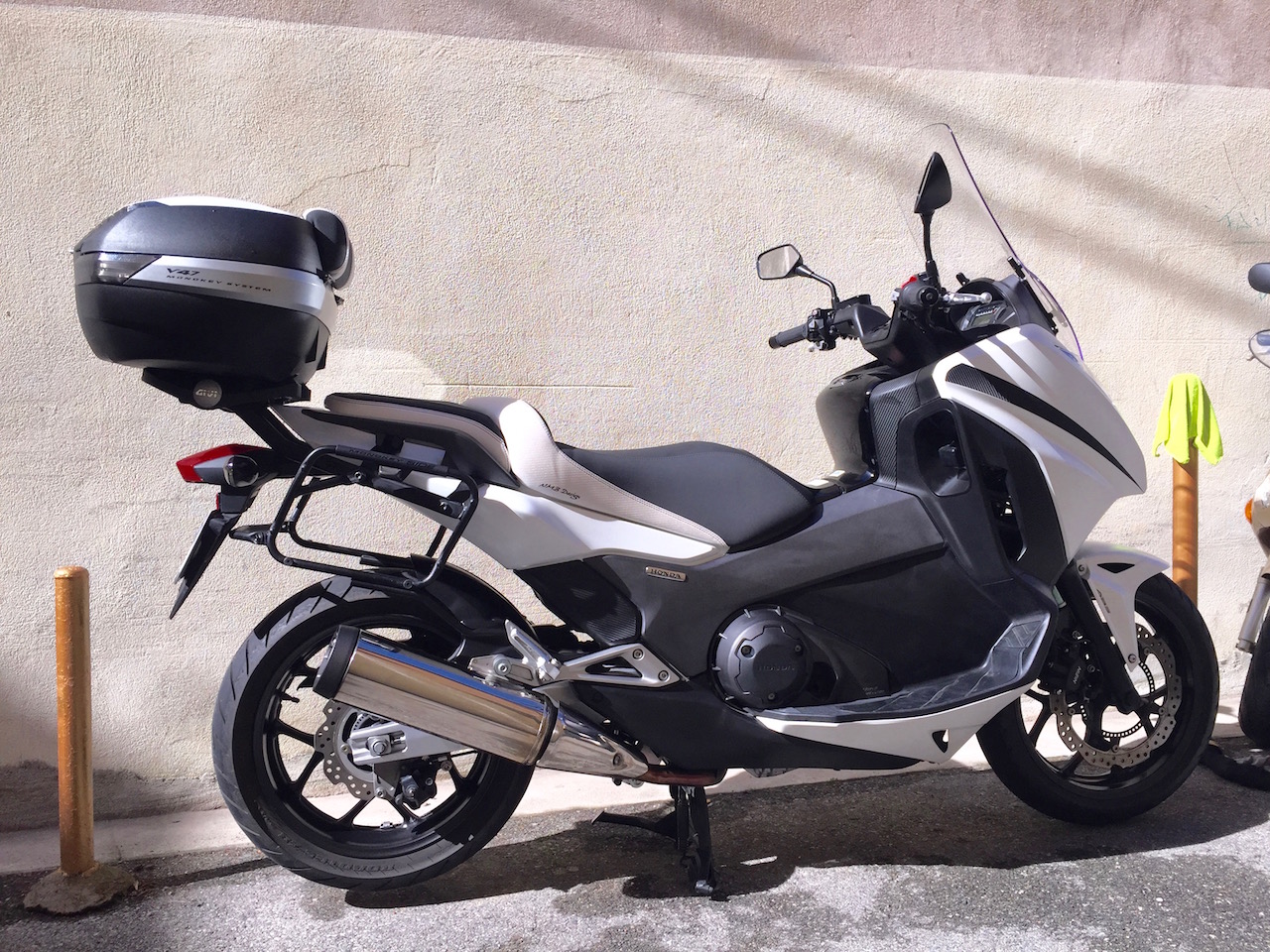 Integra 750 Mai 2015 . top case GIVI V47 et les valises V35 assorties, lèche roue et protège chaine GIVI, patin de béquille latérale GIVI