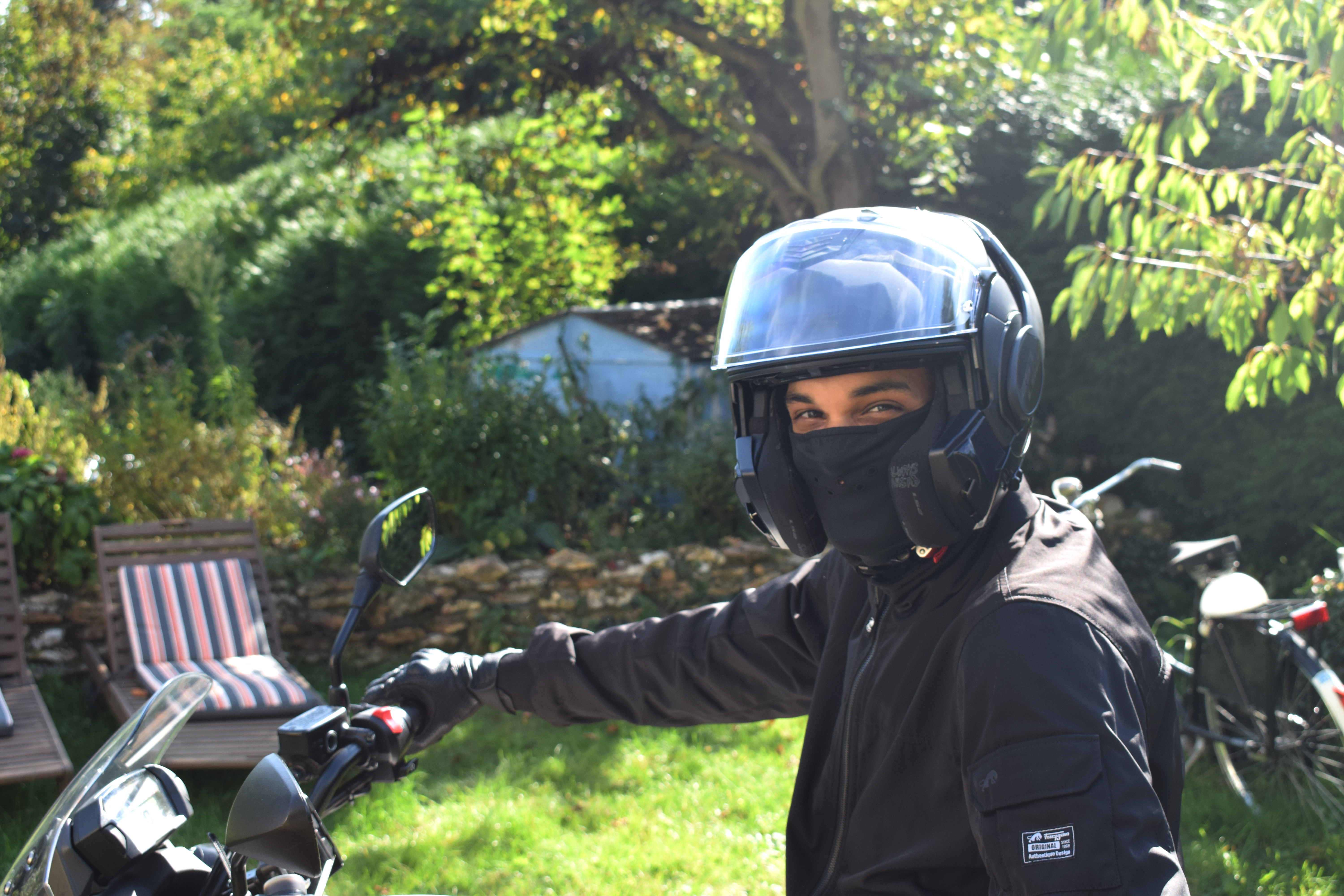 Le chat en question n'a pas le regard aussi enthousiaste que le motard...