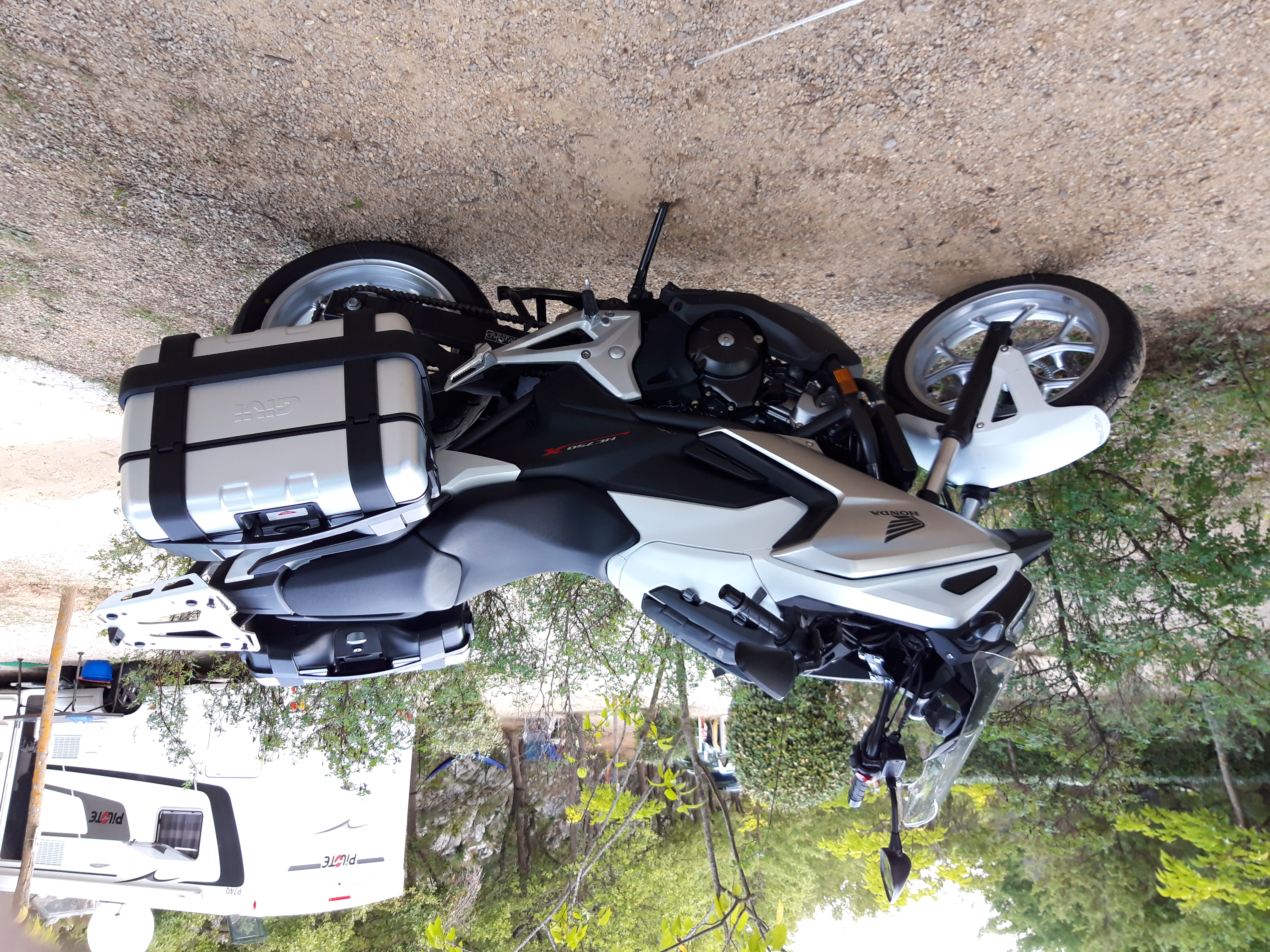 Vla mon nc que j ai eu début septembre . Modèle 2018 14000 km équipée des valises .petite sacoche réservoir. Prolongateur garde boue et une petite bavette maison pour protéger l amortisseur . Suis positivement surpris par cette moto .