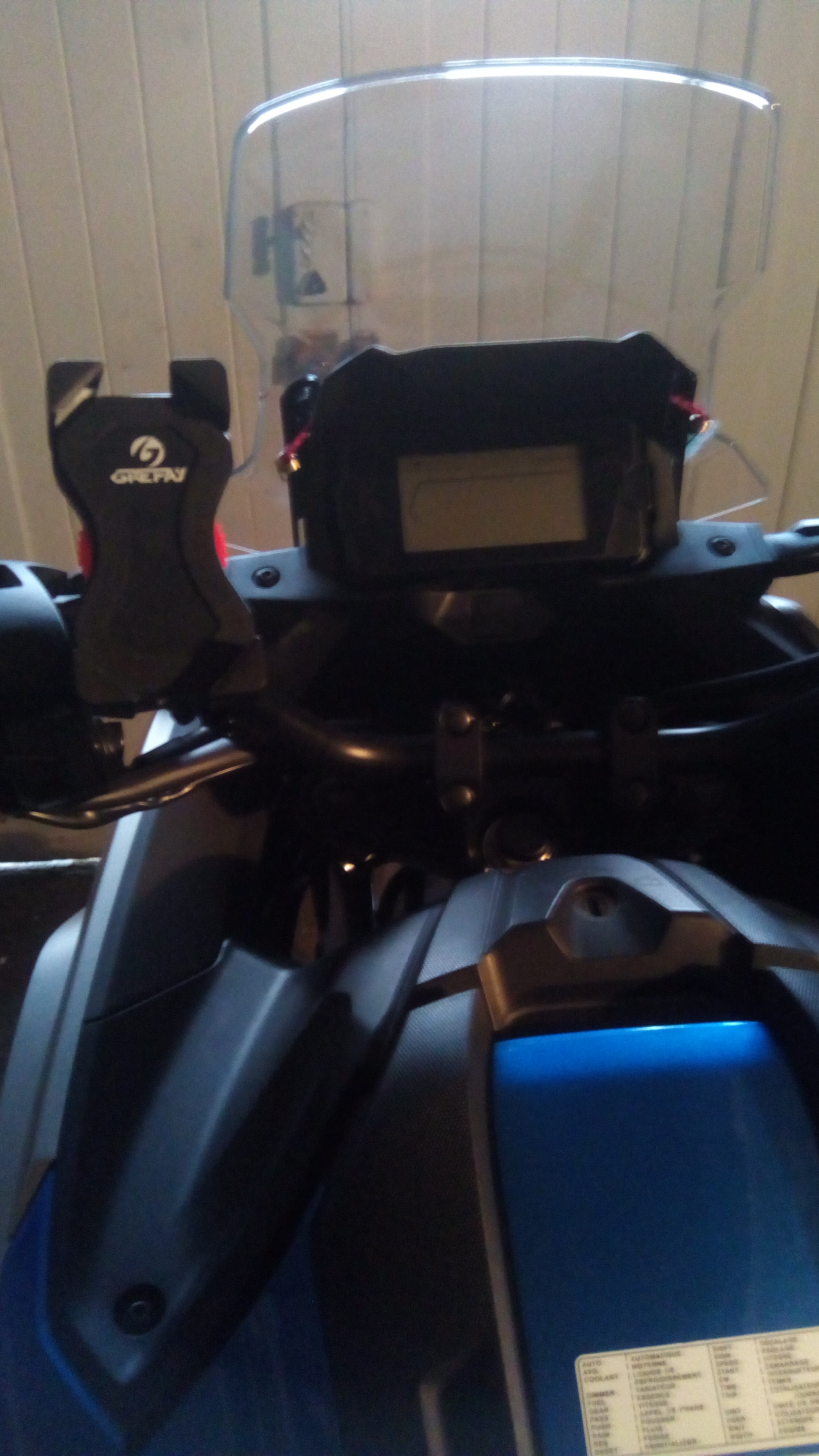 J'ai mis en place un mini tendeur sur la casquette de compteur,pour coincer la carte routière. J'aime bien avoir une vue d'ensemble sur la région visitée,en plus du gps. D'autres parts,lorsque j'ai de la place pour emmener ma tablette,il suffit de la connecter via le point d'accès du mobile, pour avoir d'autres informations si besoin.