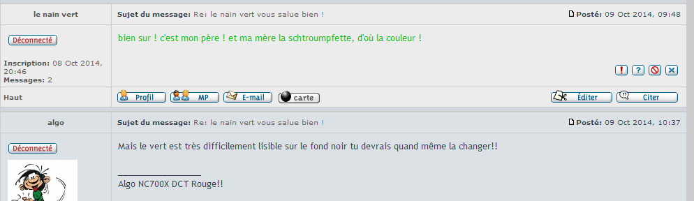 algo a écrit :Mais le vert est très difficilement lisible sur le fond noir tu devrais quand même la changer!!