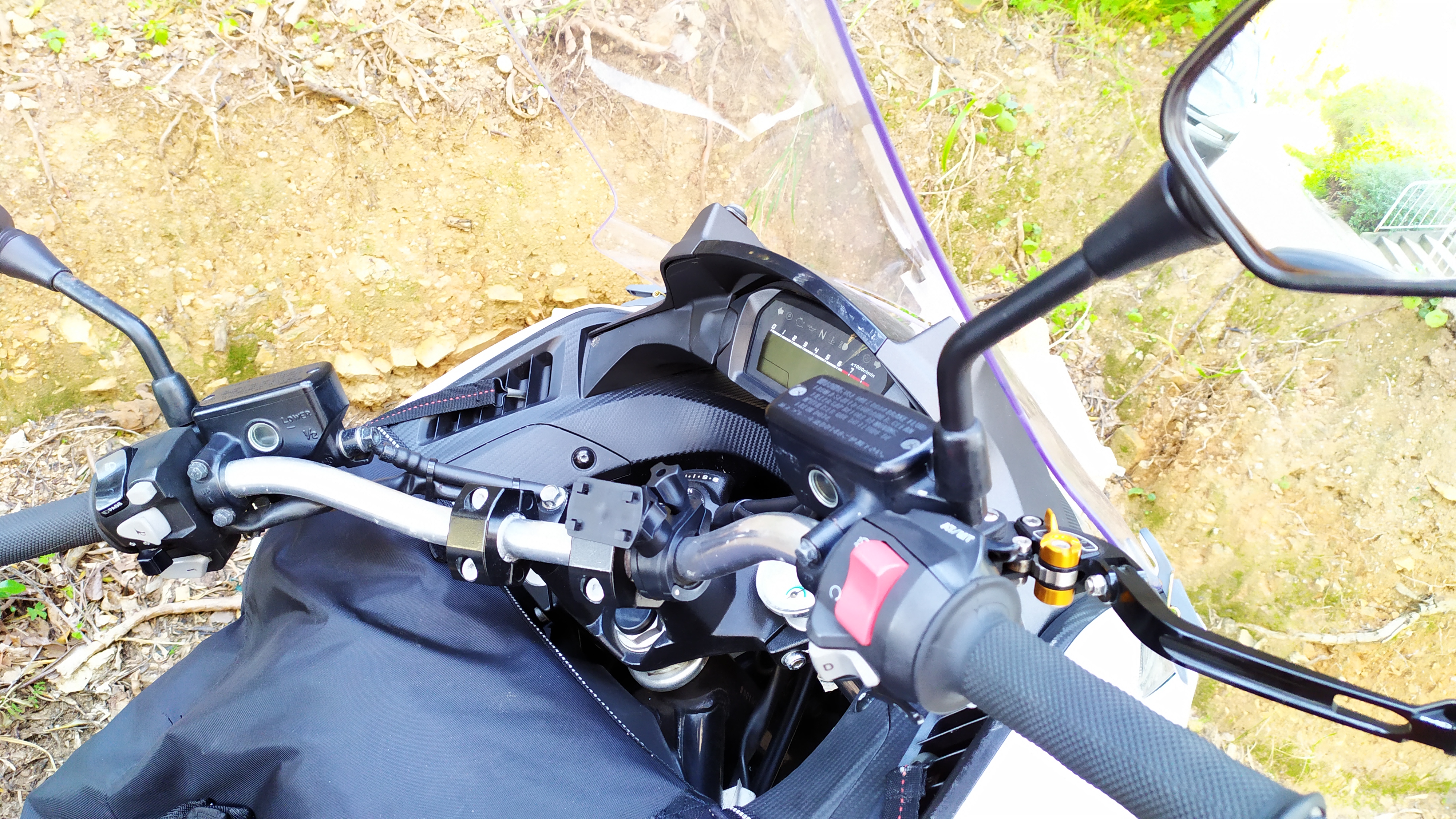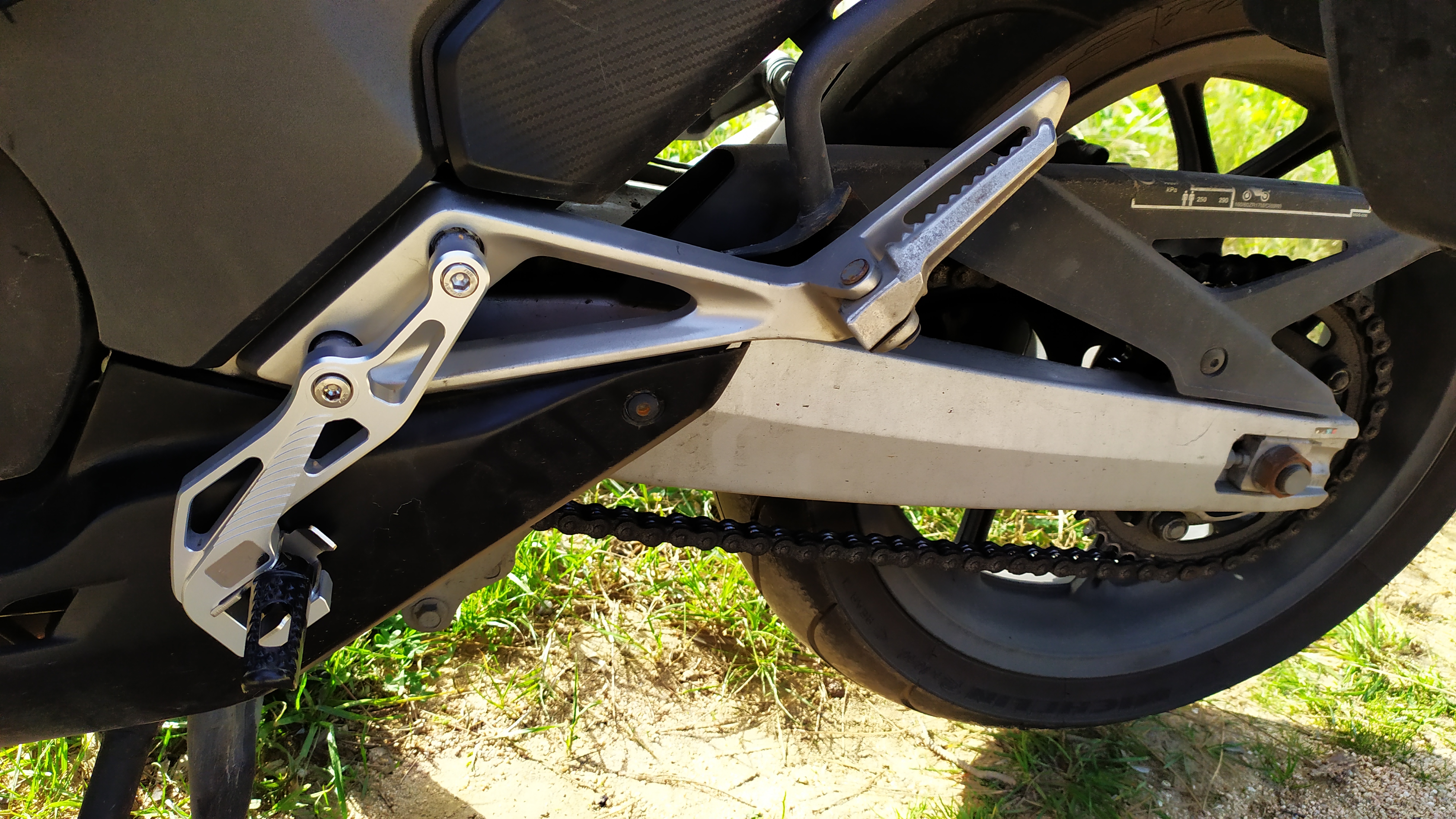 Les repose pieds pilote, je trouve qu'ils sont trop en arrière et qu'ils m'obligent à m'appuyer très fort sur le guidon au freinage, du coup pour moi ils seront surtout une position supplémentaire occasionnelle pour que les genoux aient droit à toutes les positions, c'est très bien pour ça...