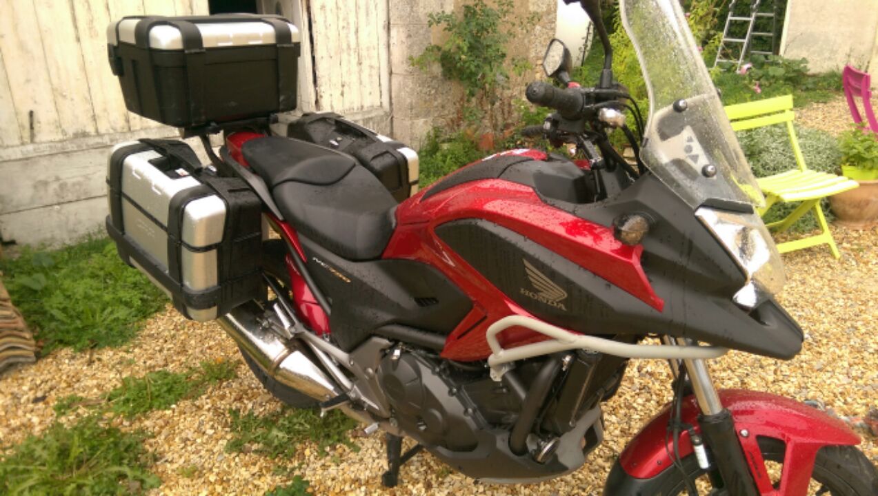 Après un VStrom 650 puis un R1200RT. Je comptais reprendre un Vstrom d'occasion mais j'ai eu le coup de coeur pour un NC750X rouge équipé (bagagerie alu, bulle haute, pare-carter, béquille centrale ...) que je vais chercher demain à Angoulème.