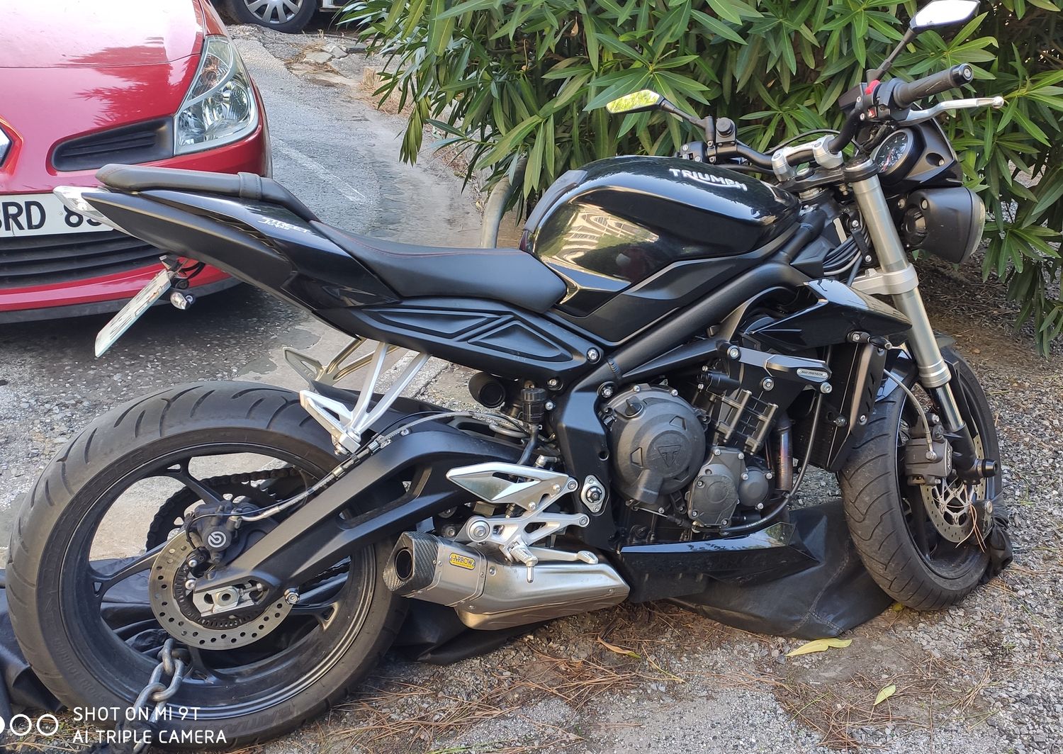 Dans cet univers envahi de tristes nouvelles, Covid 19, dérèglement climatique, gestes barrières, masque, fermeture des restaurants, j'ai eu un besoin de folie, de déraisonnable, je me suis donc offert la moto certes que j'ai toujours adorée au niveau pilotage, mais relativement inadaptée à mon âge (74 ans) et à mon ancienne pratique (duo, bagages, ...) : une Triumph Street Triple 765 S 2017 !!