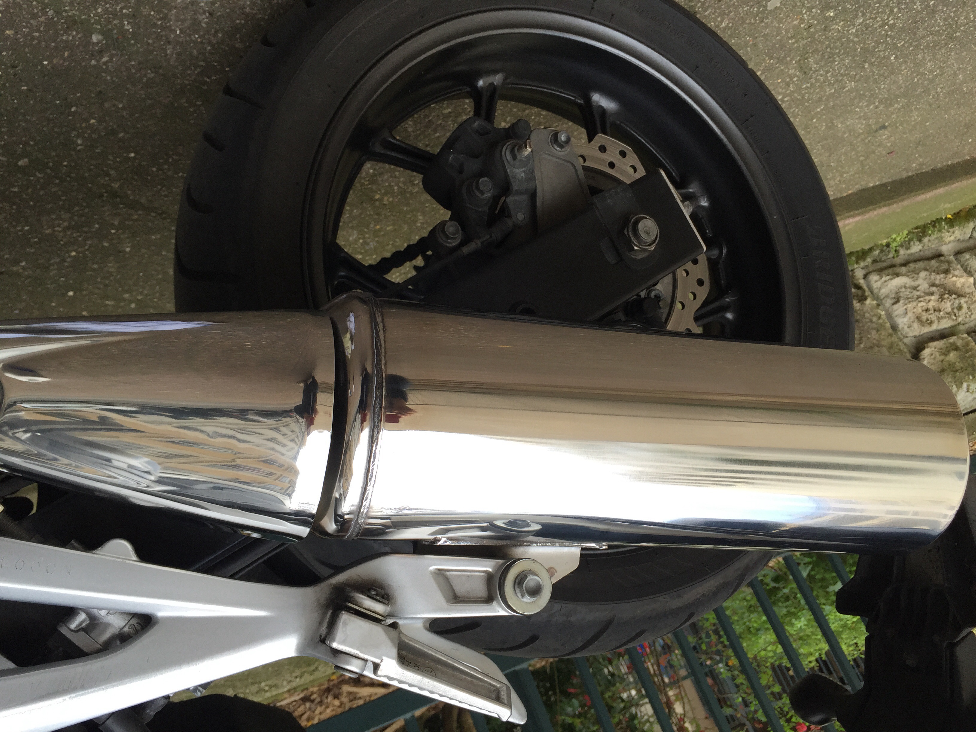 Par contre le silencieux est chromé, ce qui implique d'utiliser Belgom Chromes pour éviter les rayures.