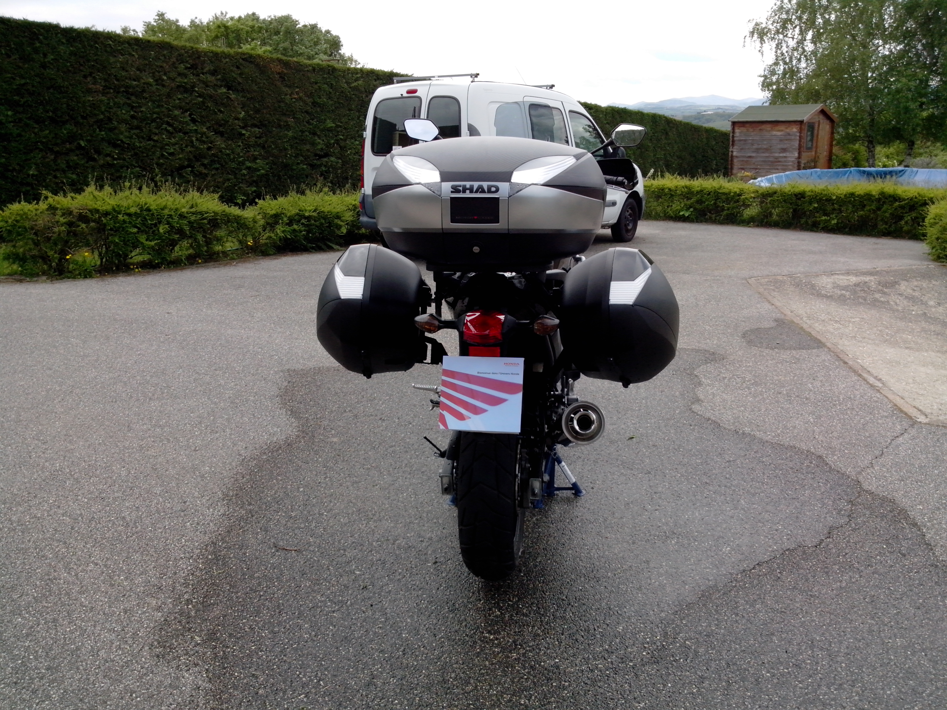 Il me semble donc qu'il faut que je cintre le support de top pour le rapprocher de la moto, retoucher ses attaches sur le cadre que ça va générer, y fixer le support de valises 3, modifier les attaches sur la platine de r-p.... du boulot quand même !!