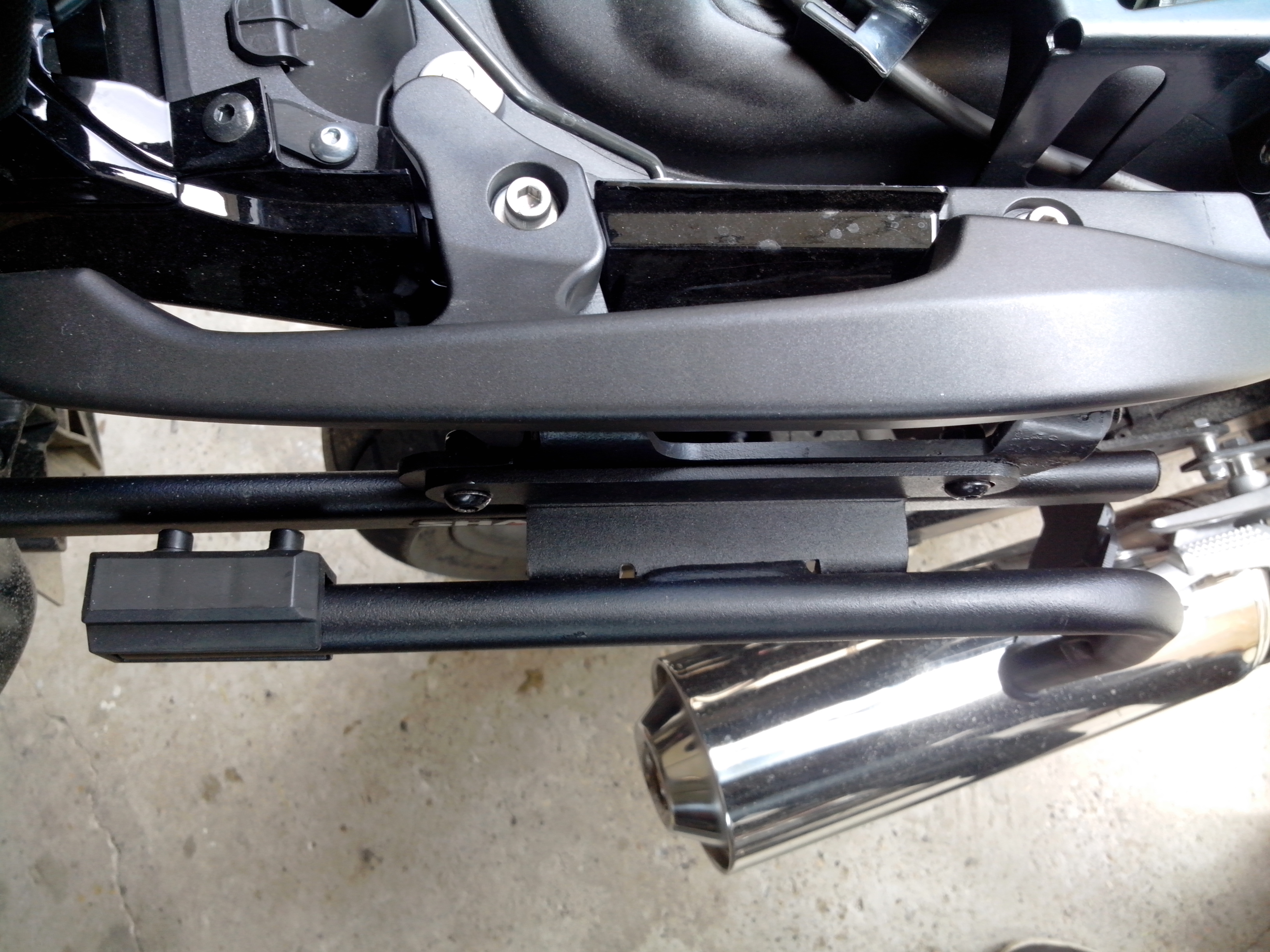 Après les vacances , je pense remodifier les fixations pour rapprocher encore un peu plus au niveau bas pour Supprimer l'entretoise et peindre le tout de la même couleur que le crashbar avant. Ça pourrait faire pas mal ! Mais bon avant promenade en corse fin mai et la Grèce en août ! Va rouler la NC :D :D :D